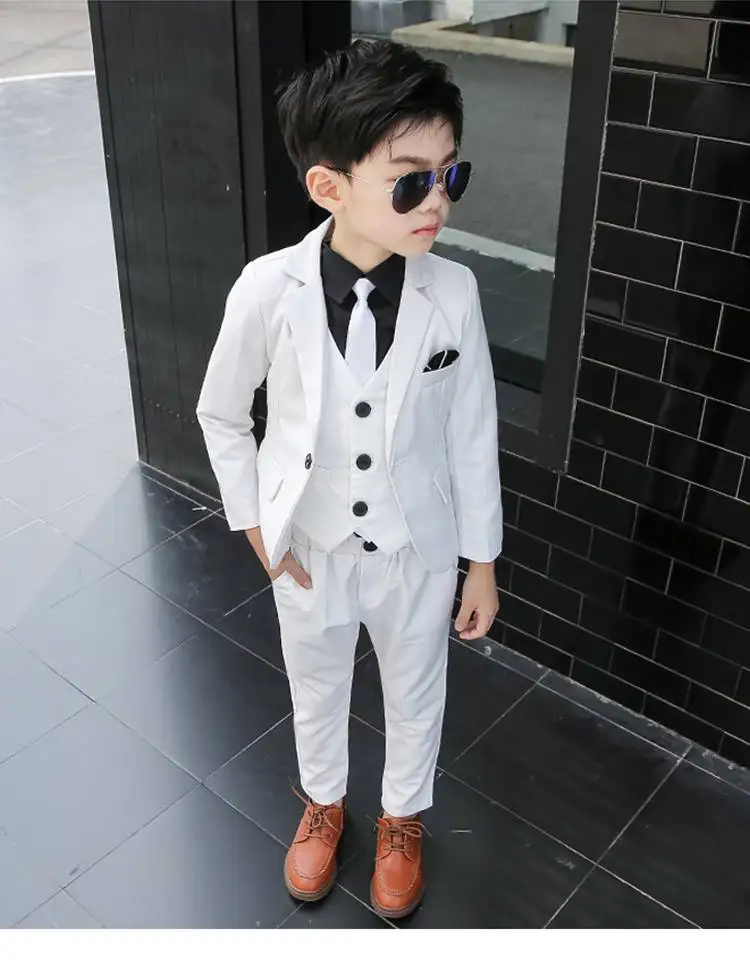 Белый свадебный костюм с цветочным рисунком для мальчиков детское платье-смокинг для выпускного вечера Детский костюм для представлений пинао школьная форма