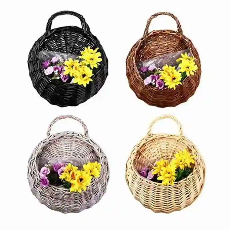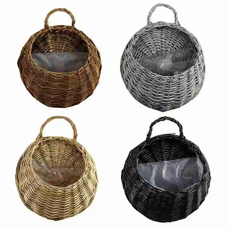 Ротанговая ваза-корзина ручной работы, садовая настенная корзина для цветов, птичье гнездо, настенная подвесная ваза, контейнер, корзина для хранения, декоративная стойка