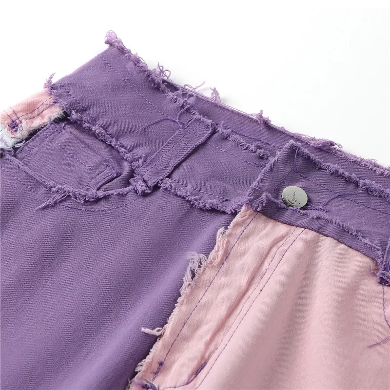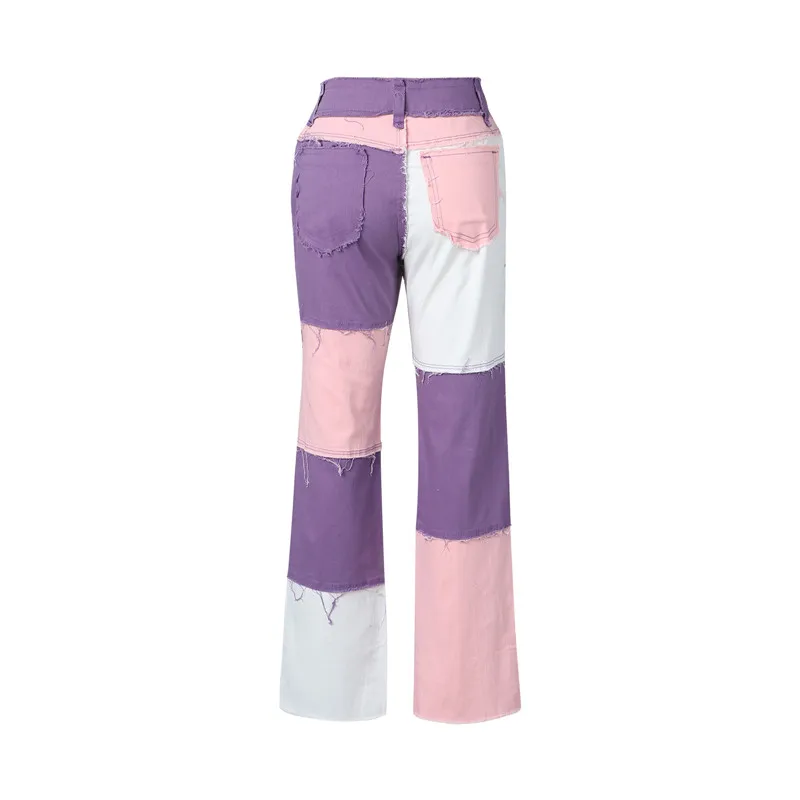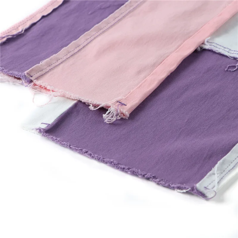 2021 новые модные Осенние Синиерозовые джинсы в стиле пэчворк, женс...