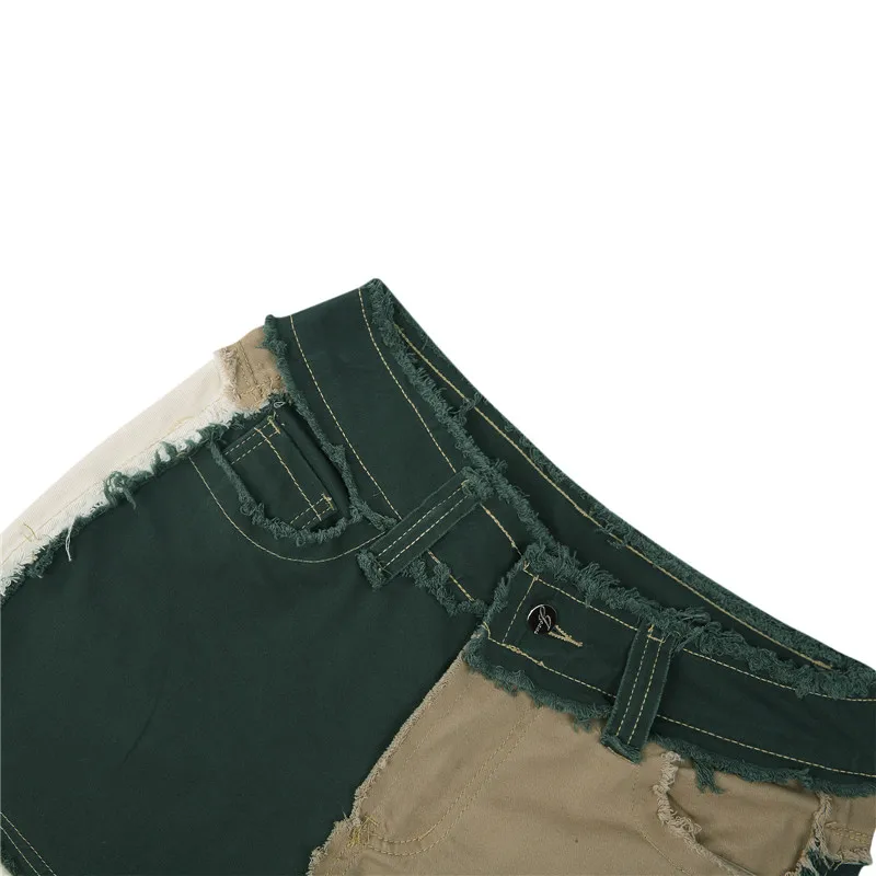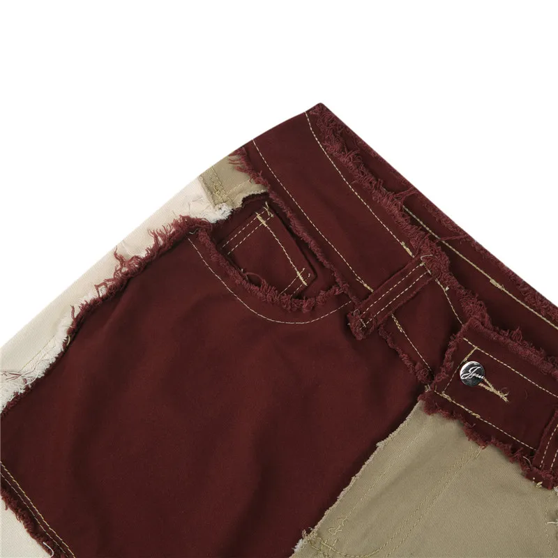 Джинсы женские коричневые в стиле пэчворк, ковбойские брюки с завыш...