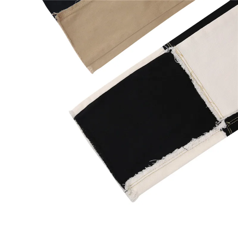 Корейские модные женские черные джинсы в стиле пэчворк с широкими ш...