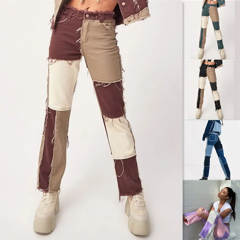 Осенние женские разноцветные джинсы в стиле пэчворк, женские узкие ...