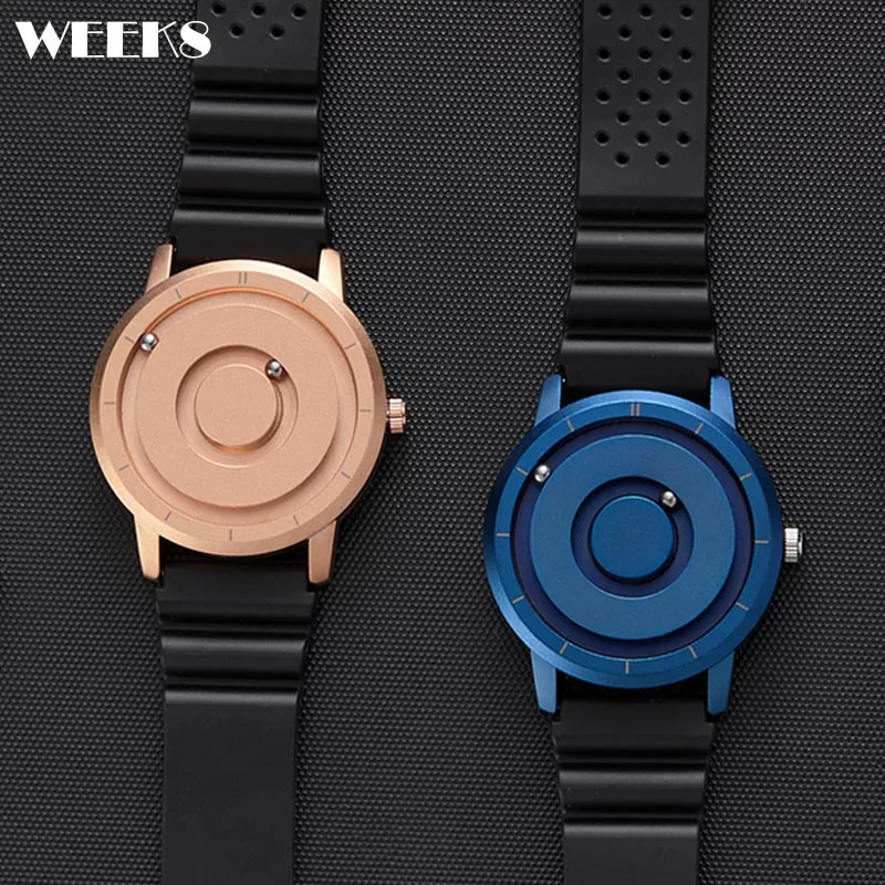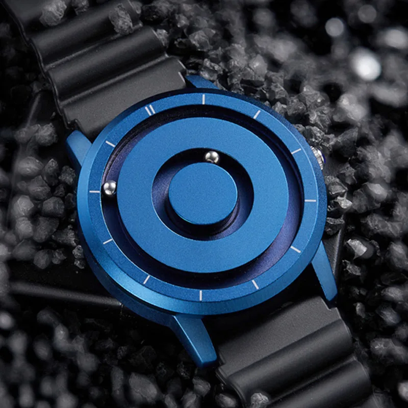 Повседневные часы для мужчин, креативный циферблат, мужские кварцевые часы, креативный дизайн, новый стиль, магнитный шар, резиновый ремешок, наручные часы