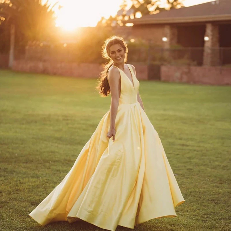 Элегантное простое атласное платье А-силуэта для выпускного вечера сексуальное вечернее платье с V-образным вырезом Новое поступление Дешевое длинное платье для встречи выпускников