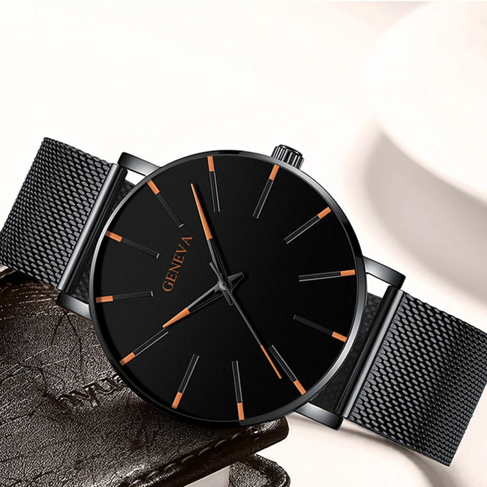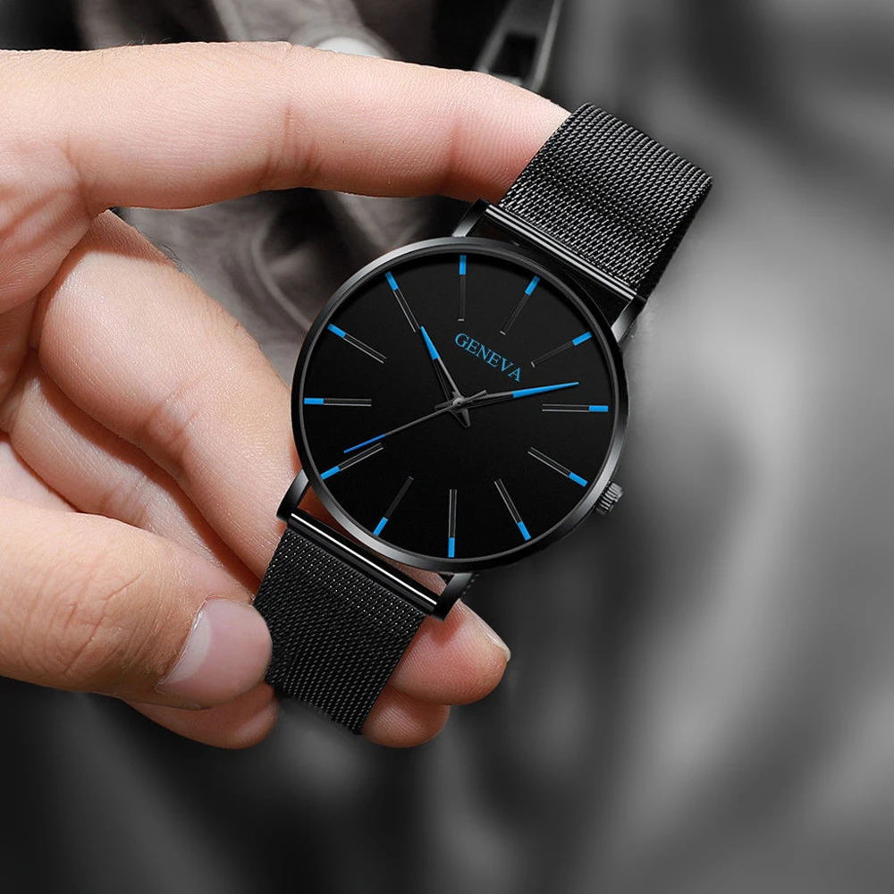 Мужские часы Женева 2020 года, черные ультратонкие кварцевые наручн...