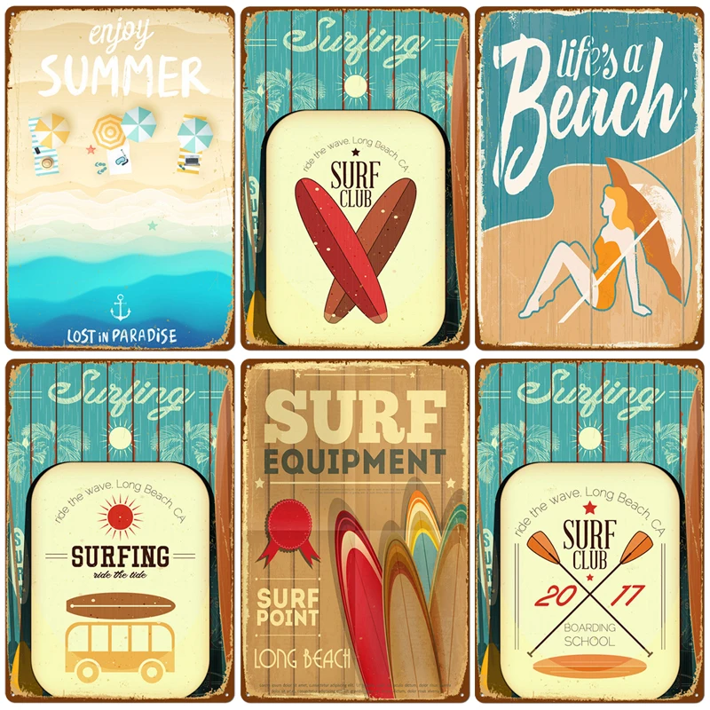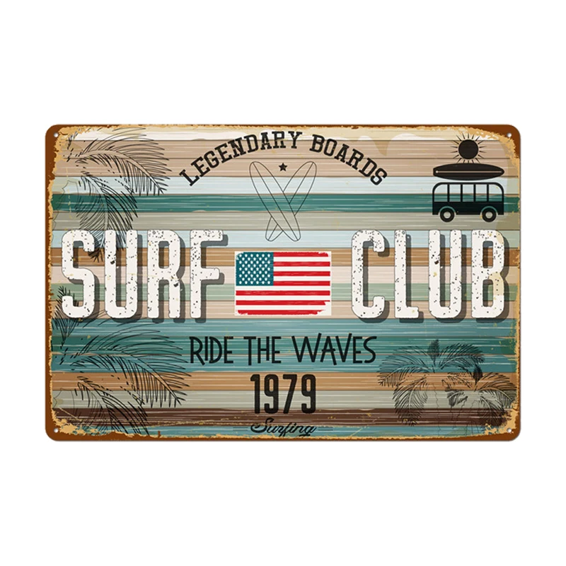 Летний Пляжный постер, винтажный металлический жестяной знак Майами, арт-Рисование клуба, наклейки, Настенный декор для паба, бара, уличное украшение для дома