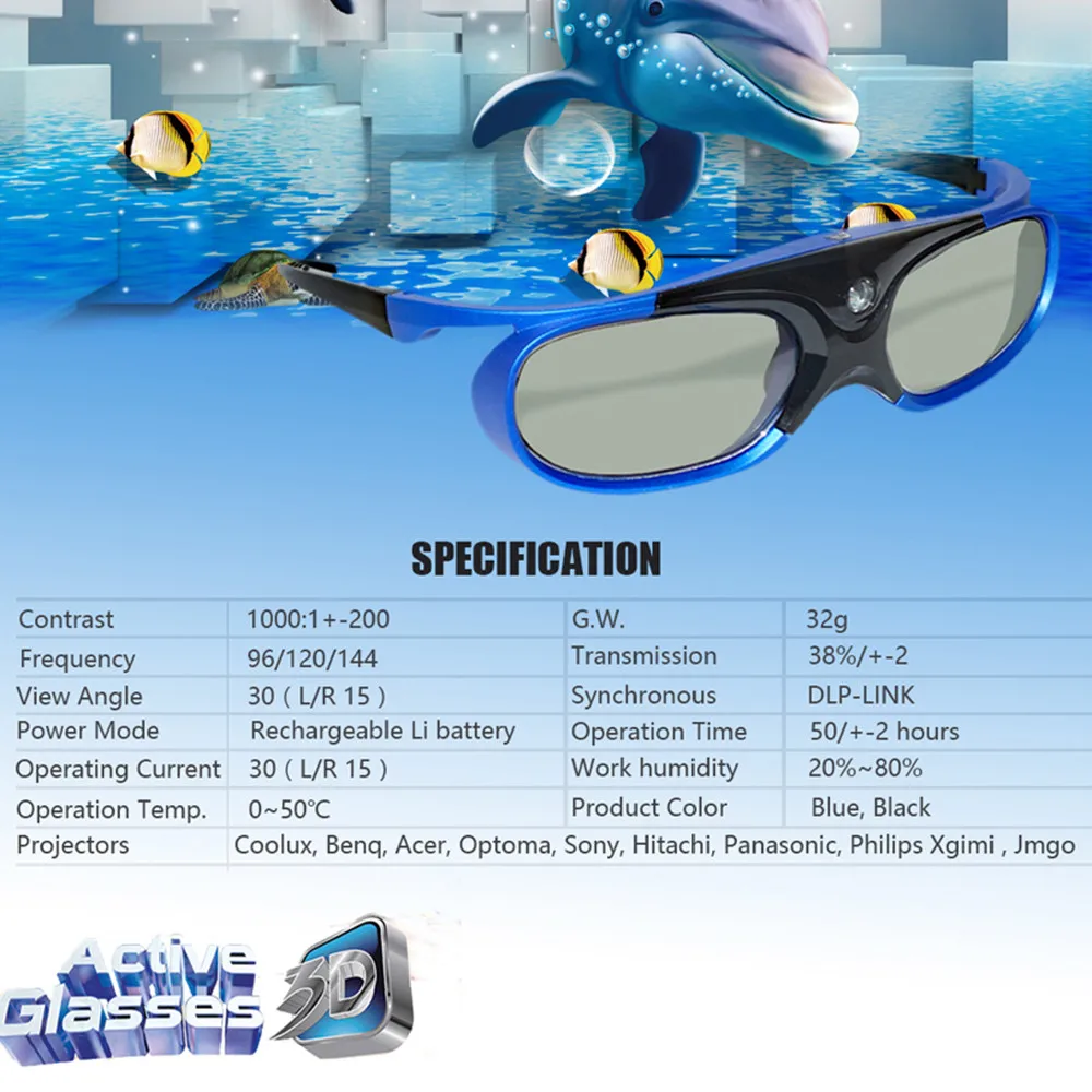 (1) универсальные 3D очки, подходят дляDLP LINKГотовый проектор