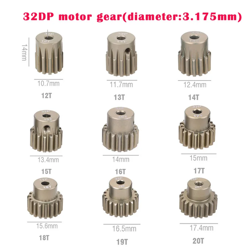 Мотор-Шестерня 32DP, 3,175 мм, 12T, 13T, 14T, 15T, 16T, 17T, 18T, 1...