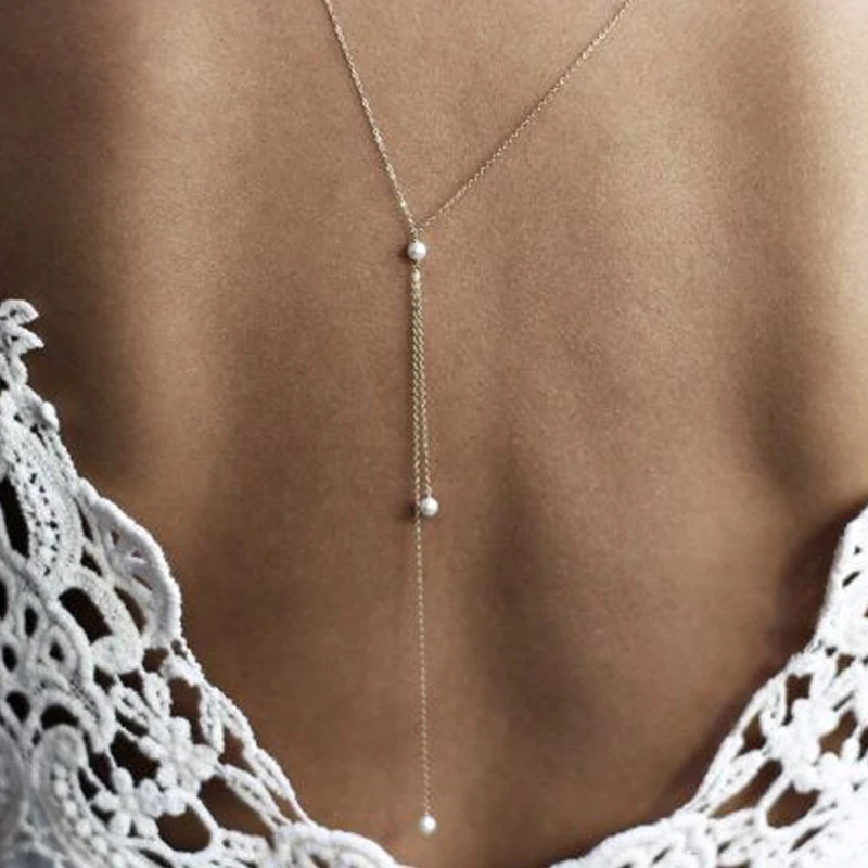 Ожерелье с имитацией жемчуга для женщин, цепочка на спину, Ювелирно...