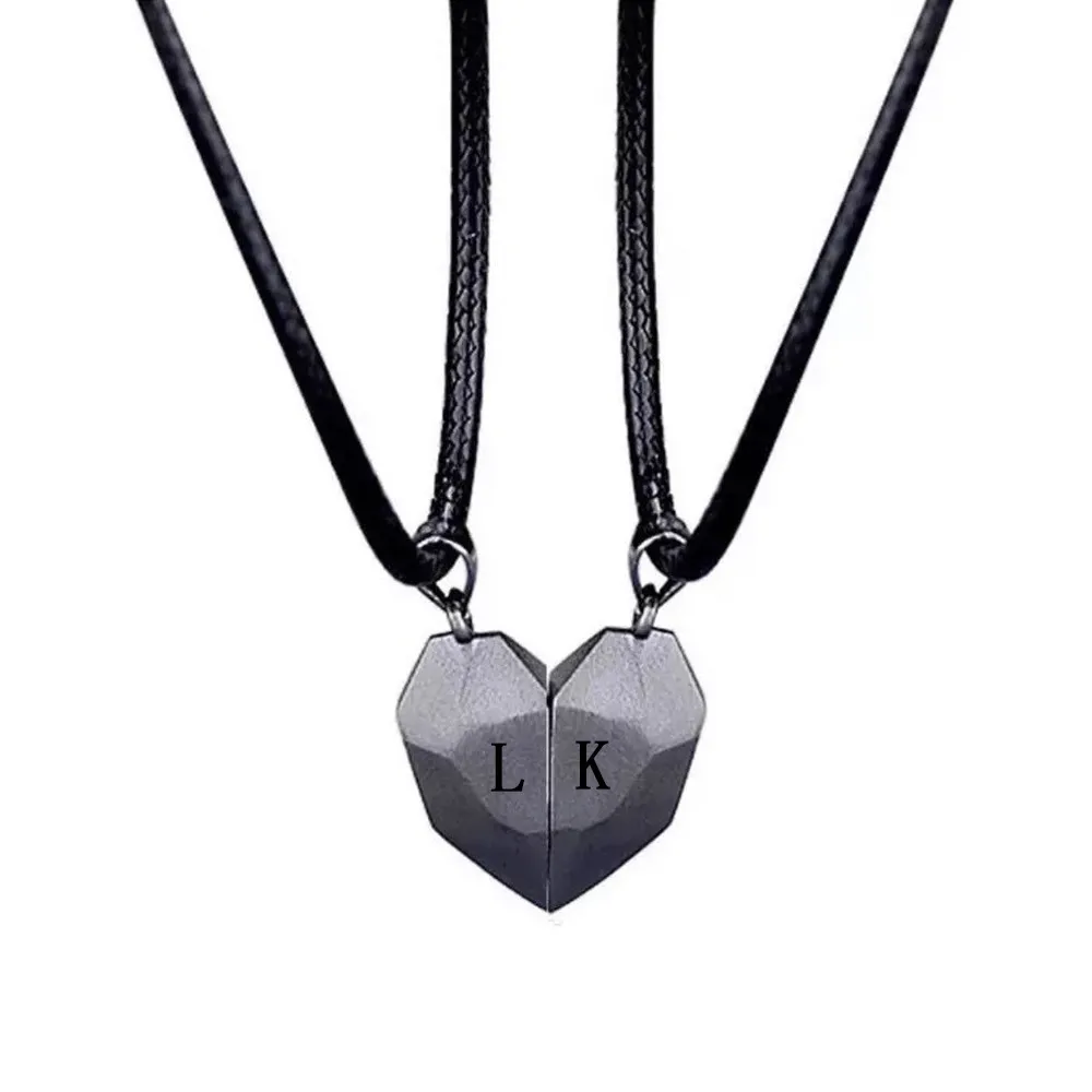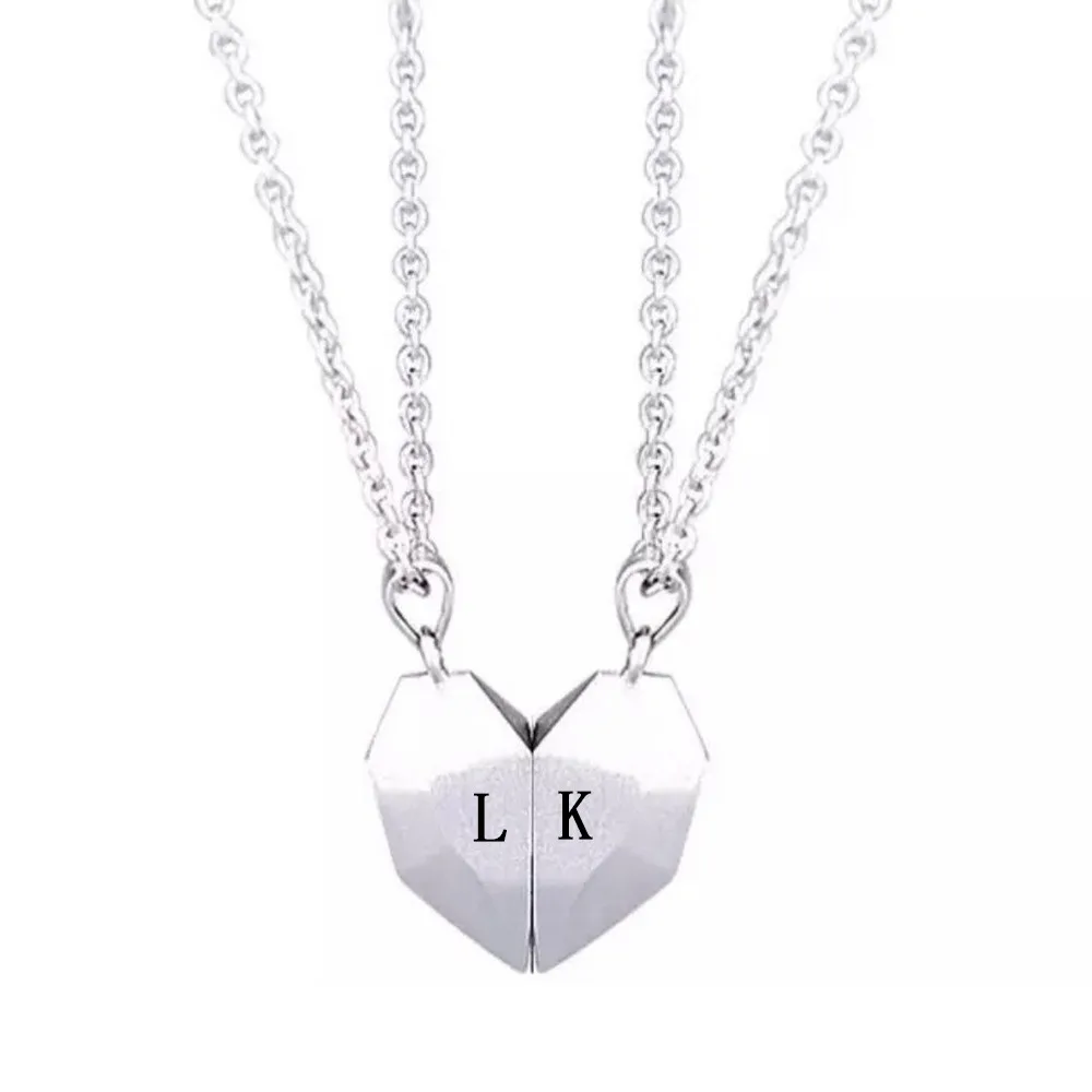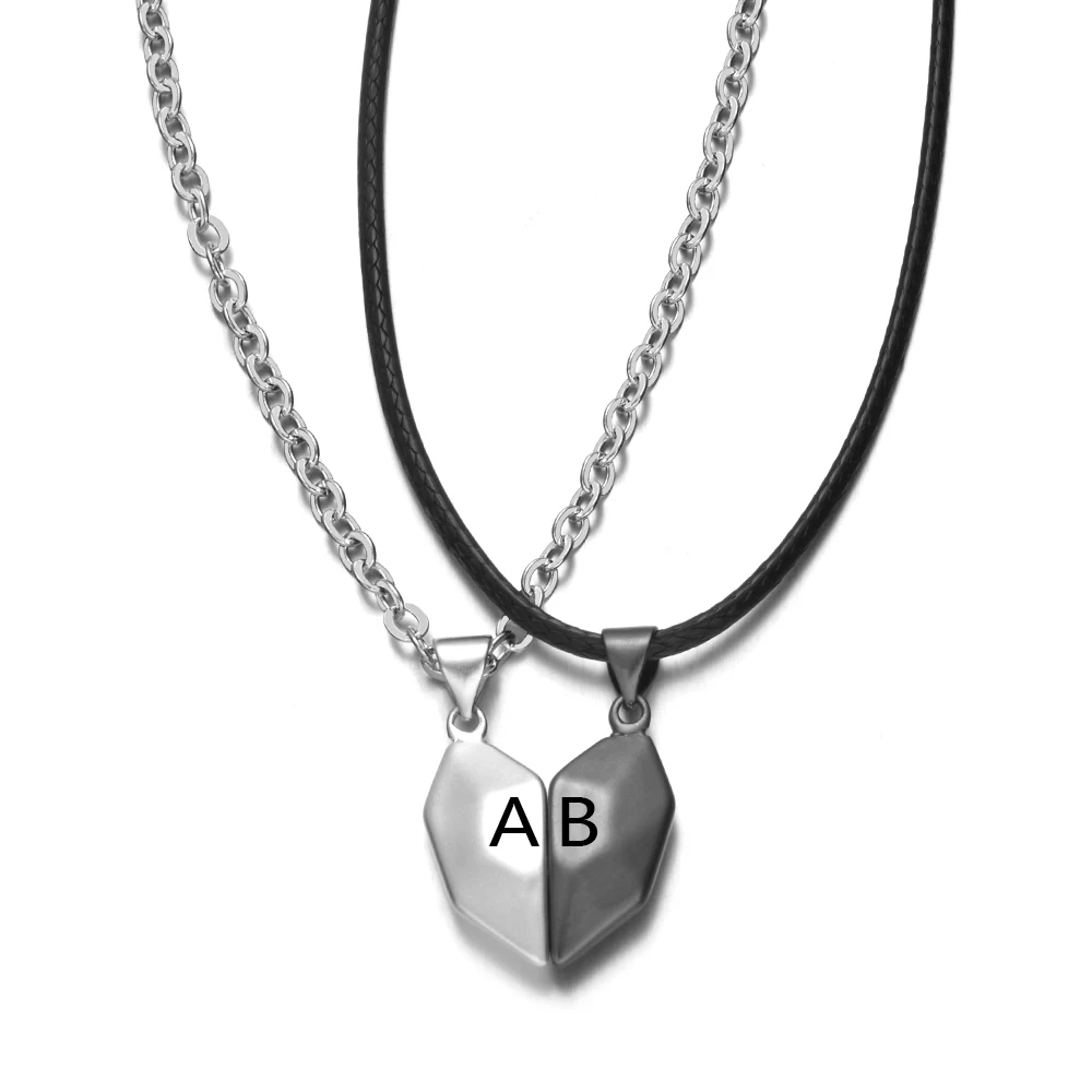 2 шт.компл., высококачественное магнитное ожерелье для влюбленных из нержавеющей стали, кулон в виде сердца, лазерная гравировка, 26 букв, Очаровательное ожерелье