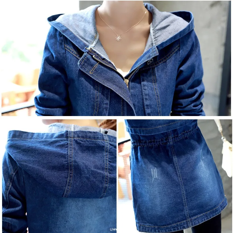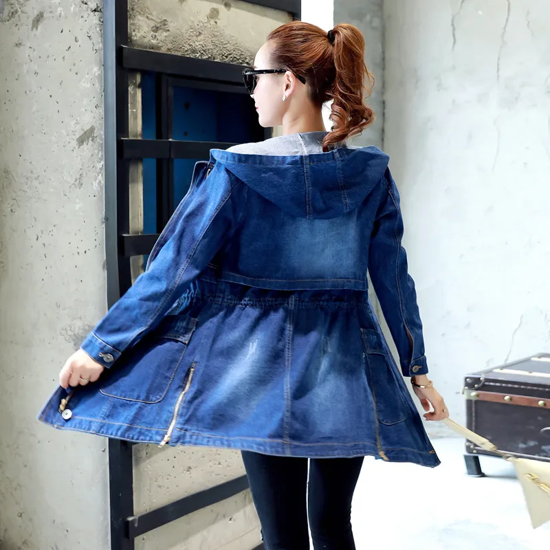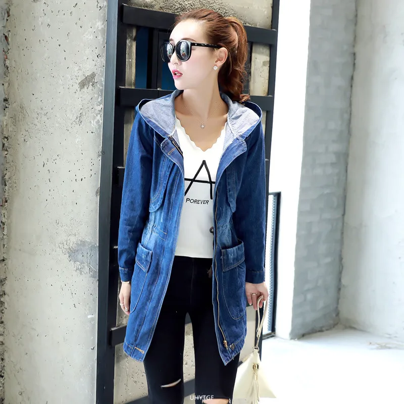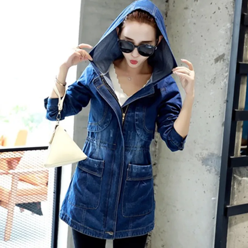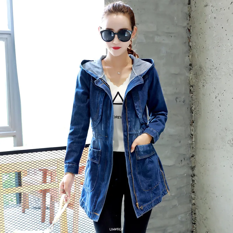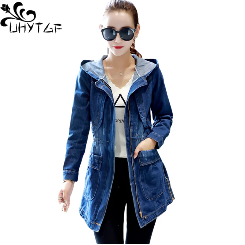 UHYTGF демисезонная куртка женская с капюшоном Свободная джинсовая куртка 5XL размера плюс верхняя одежда женская с длинным рукавом джинсовая ветровка Женская 859