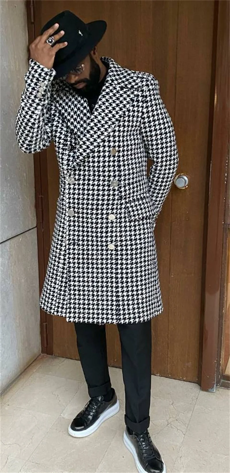 Мужские костюмы с рисунком гусиная лапка, официальный Повседневный длинный пиджак для вечерние на заказ, красивая двубортная куртка