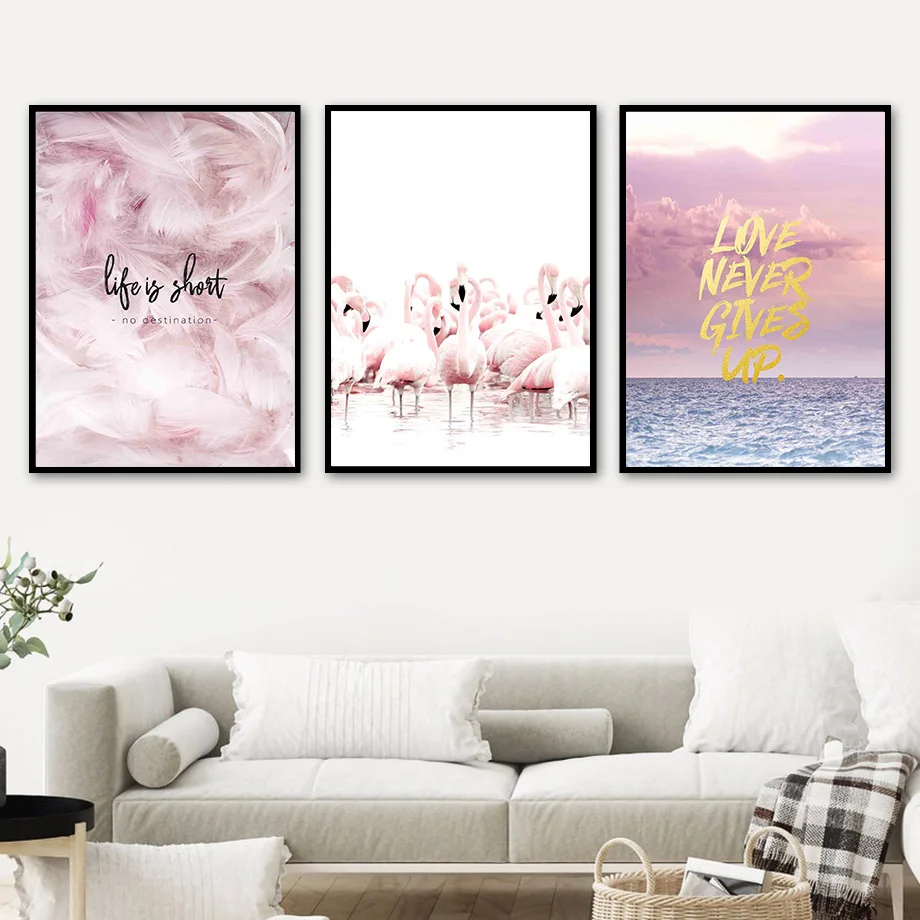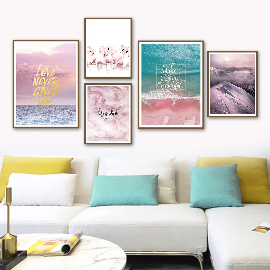 Морское облако, фламинго, перо, горное искусство, Картина на холсте, скандинавские постеры и принты, настенные картины для декора гостиной