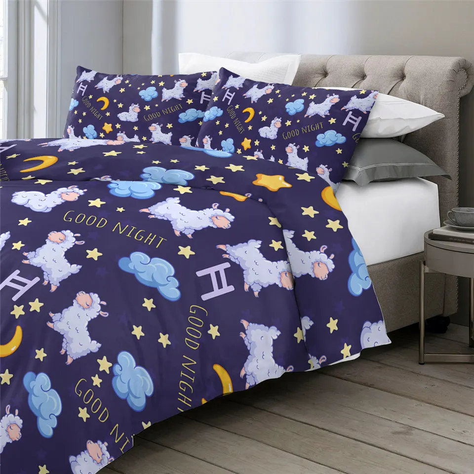 Комплект постельного белья BeddingOutlet Комплект постельного белья с овцами, с изображением луны и звезд, фиолетового и синего цветов, покрывало с мультяшными животными, милые украшения для дома
