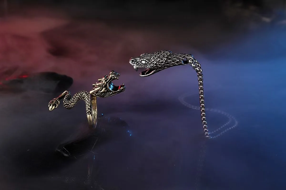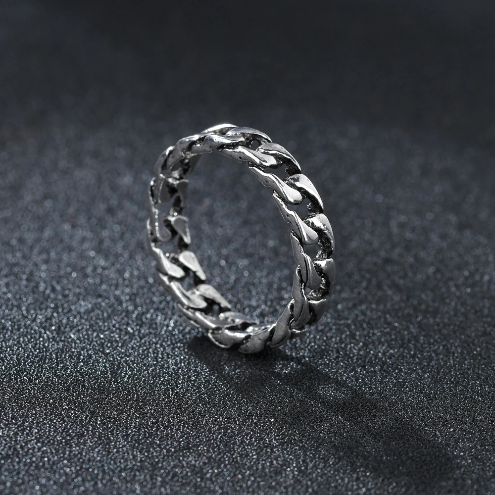 Кольцо-цепочка в стиле панк для мужчин и женщин, модное винтажное стильное ювелирное изделие из звеньев серебристого цвета в стиле рок-ролл, вечерняя бижутерия, хороший подарок