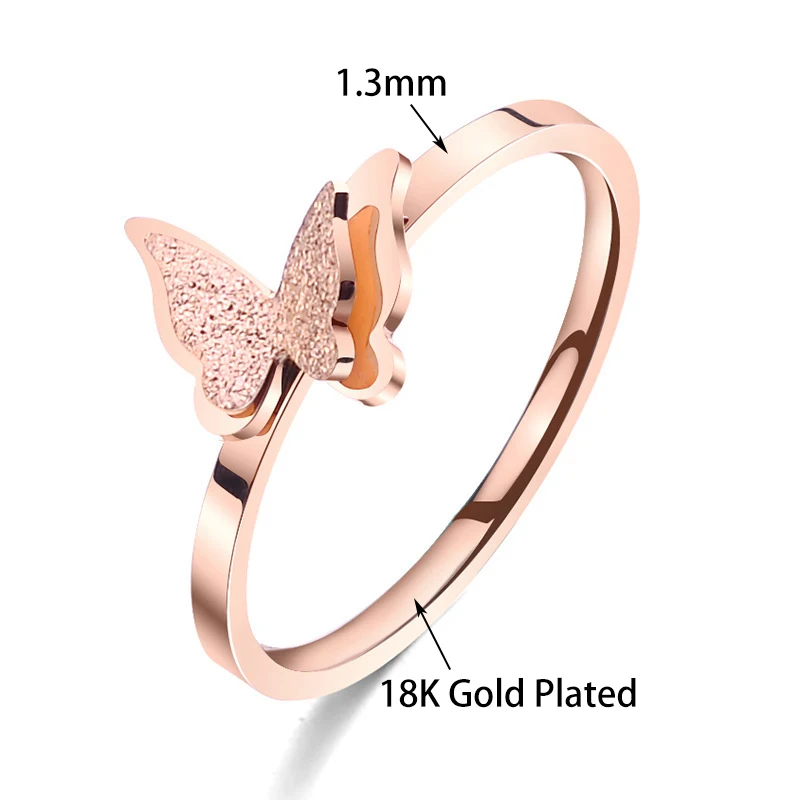 Женские кольца в форме бабочки, из нержавеющей стали, цвет розовое золото