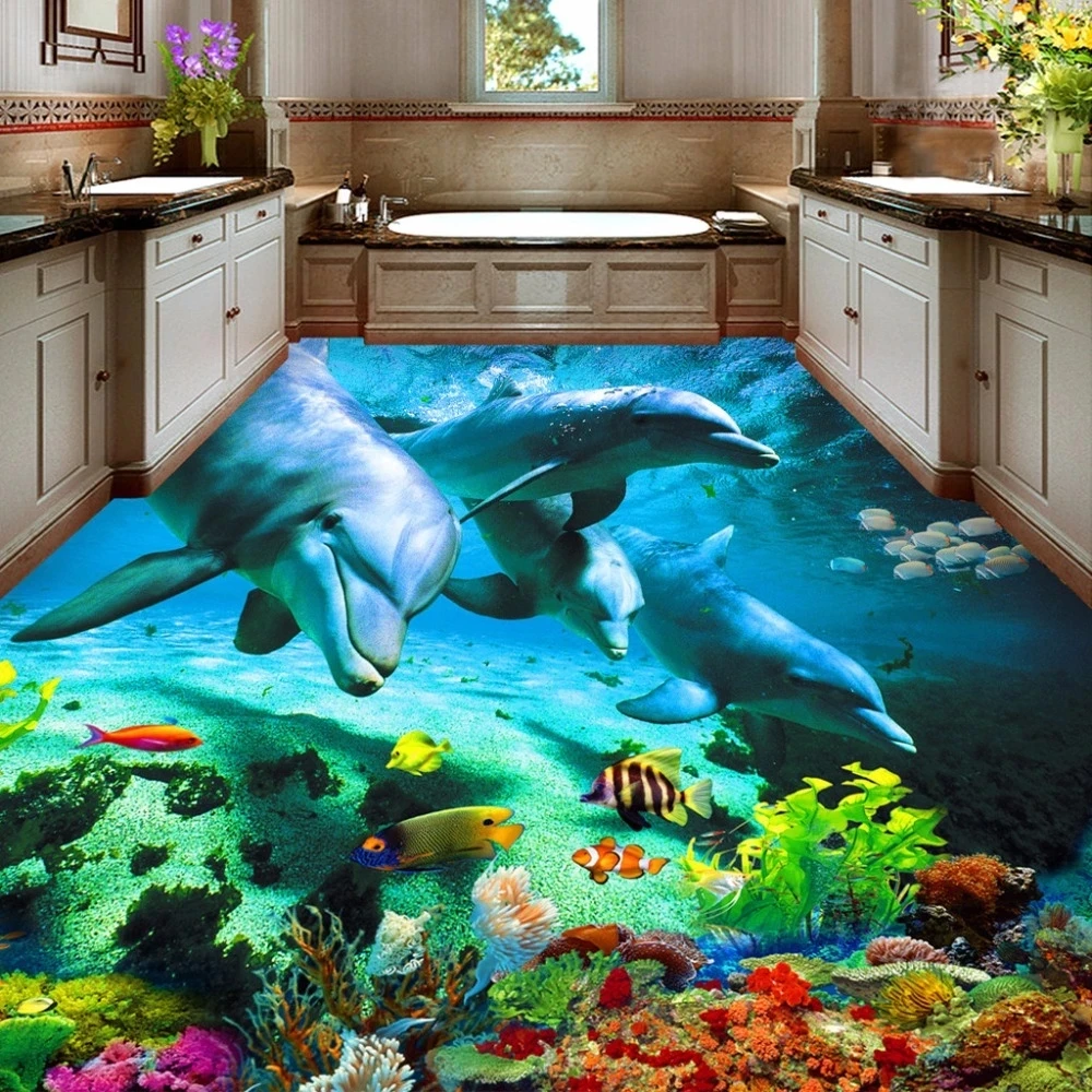 Пользовательское фото, 3D наклейка на пол, океан, мир, дельфин, унитазы, фреска, самоклеящиеся обои, современная живопись