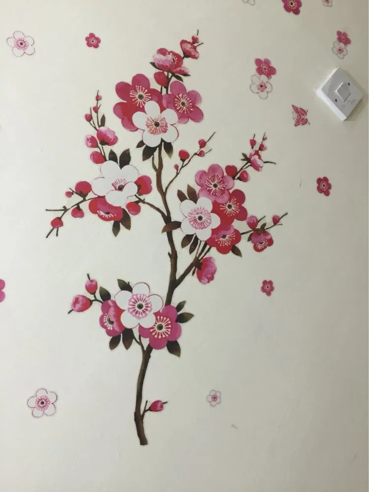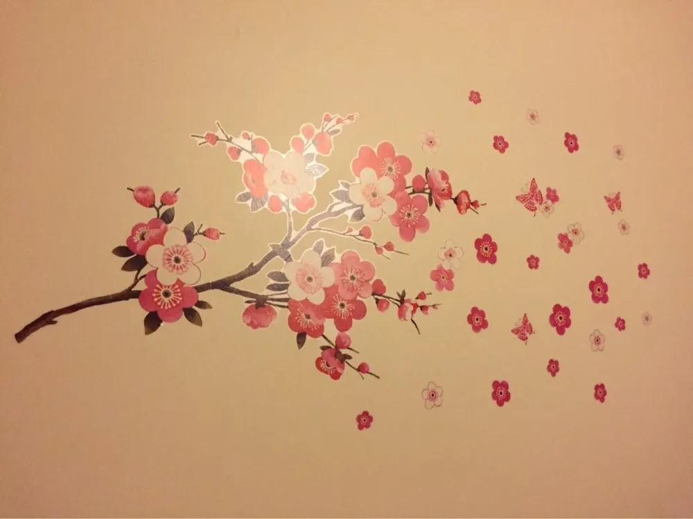 Оптовая продажа, красивые настенные наклейки sakura, украшения для ...