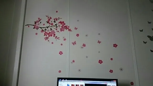 Съемная комната, цветы персика, бабочки, настенные наклейки, розовы...
