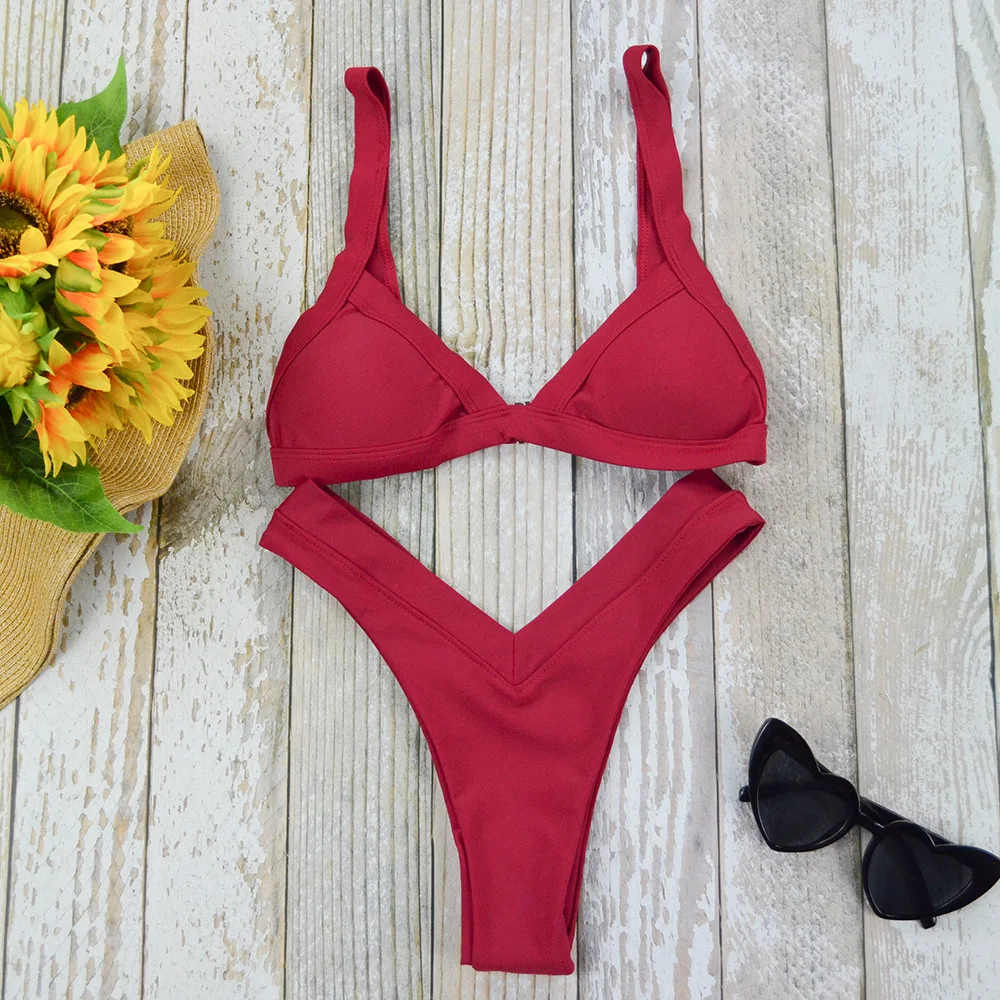 Бикини 2021, однотонный купальник, женский купальник, летний повседневный комплект бикини в стиле пэчворк, бразильский пляжный купальный костюм, одежда для плавания
