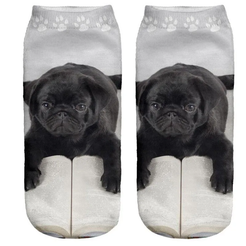 Новое поступление, женские Носки с рисунком 3D мопса, Женские Корот...