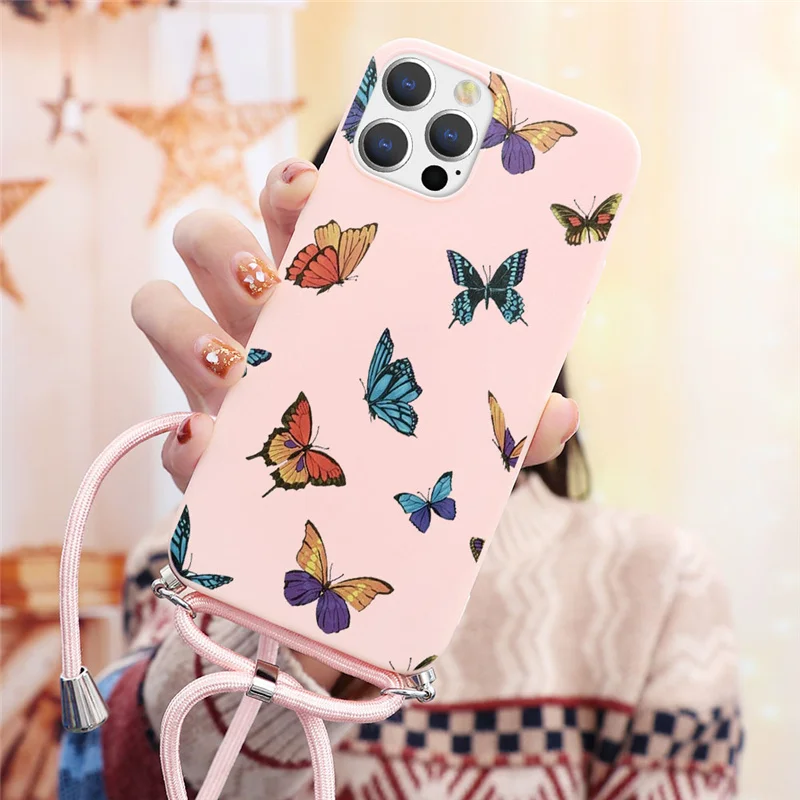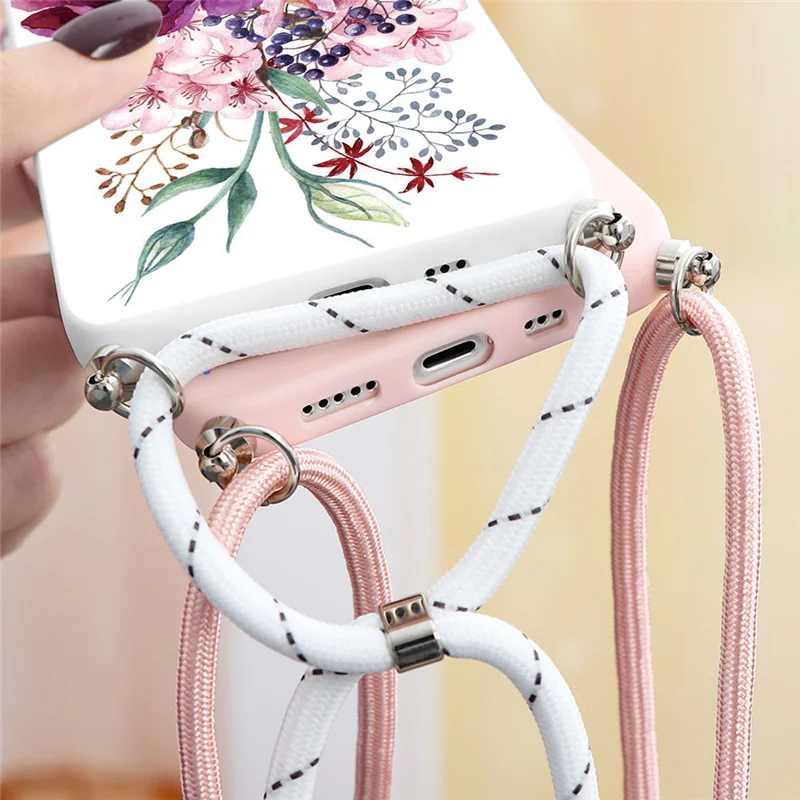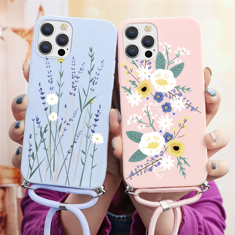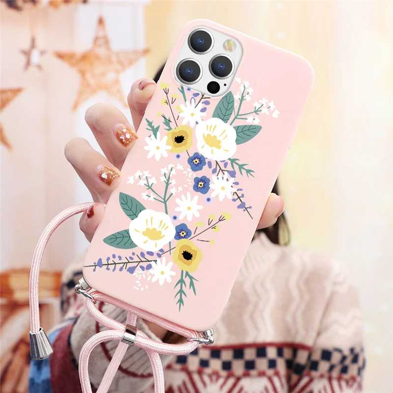 Чехол с ремешком на шнурке для iPhone 12 13 Pro Mini XS Max XR X 7 8 6 6S Plus SE 2, чехол для iPhone 11 Pro Max, мягкий чехол из ТПУ
