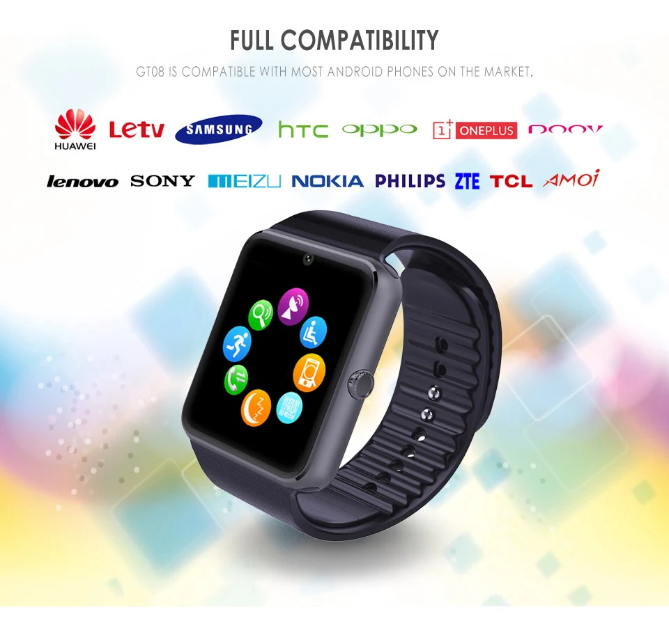2021 Bluetooth Смарт-часы GT08 с камерой Sim TF карта смарт-часы фитнес-трекер для Android IOS Huawei Xiaomi телефонные часы
