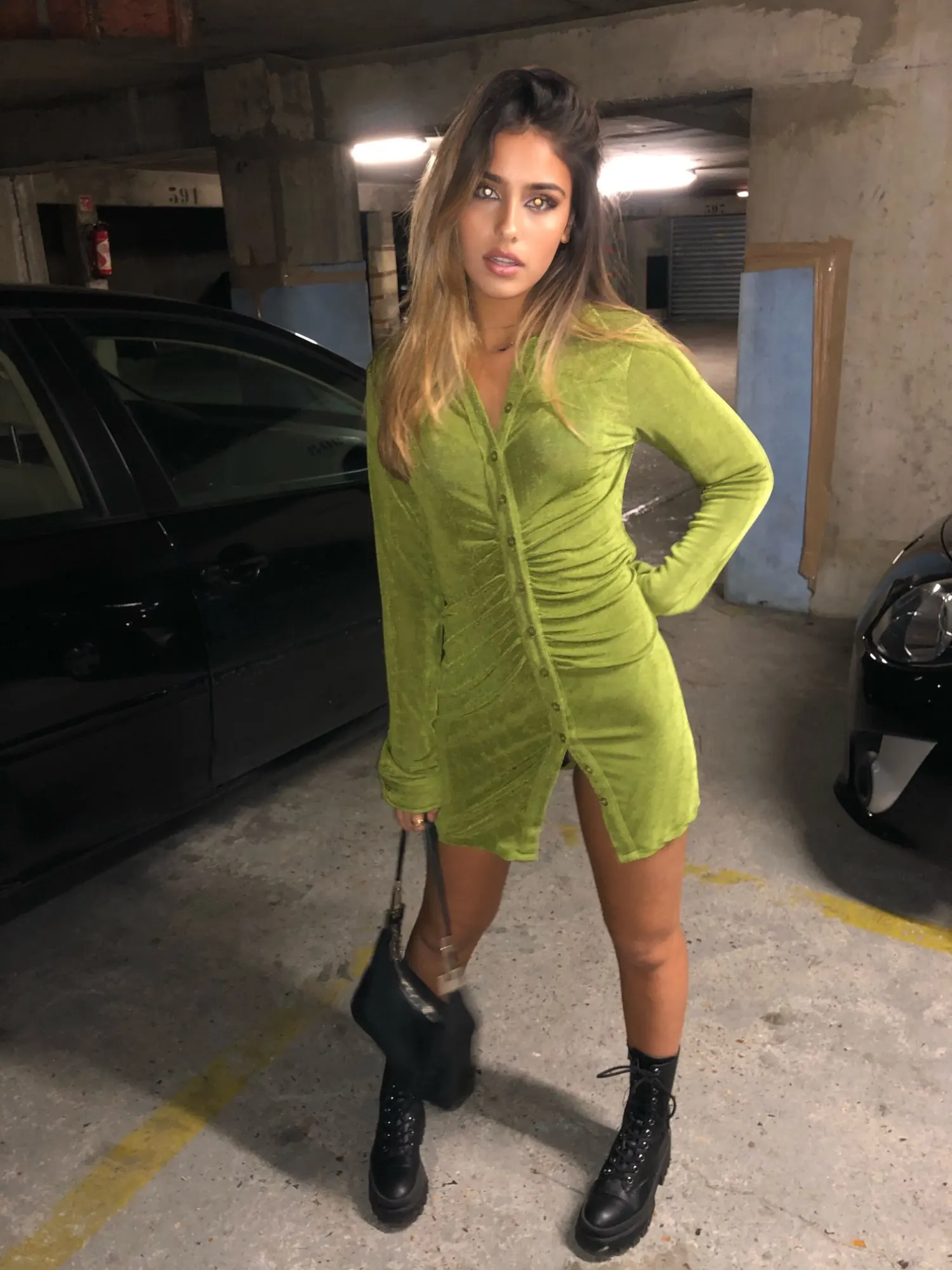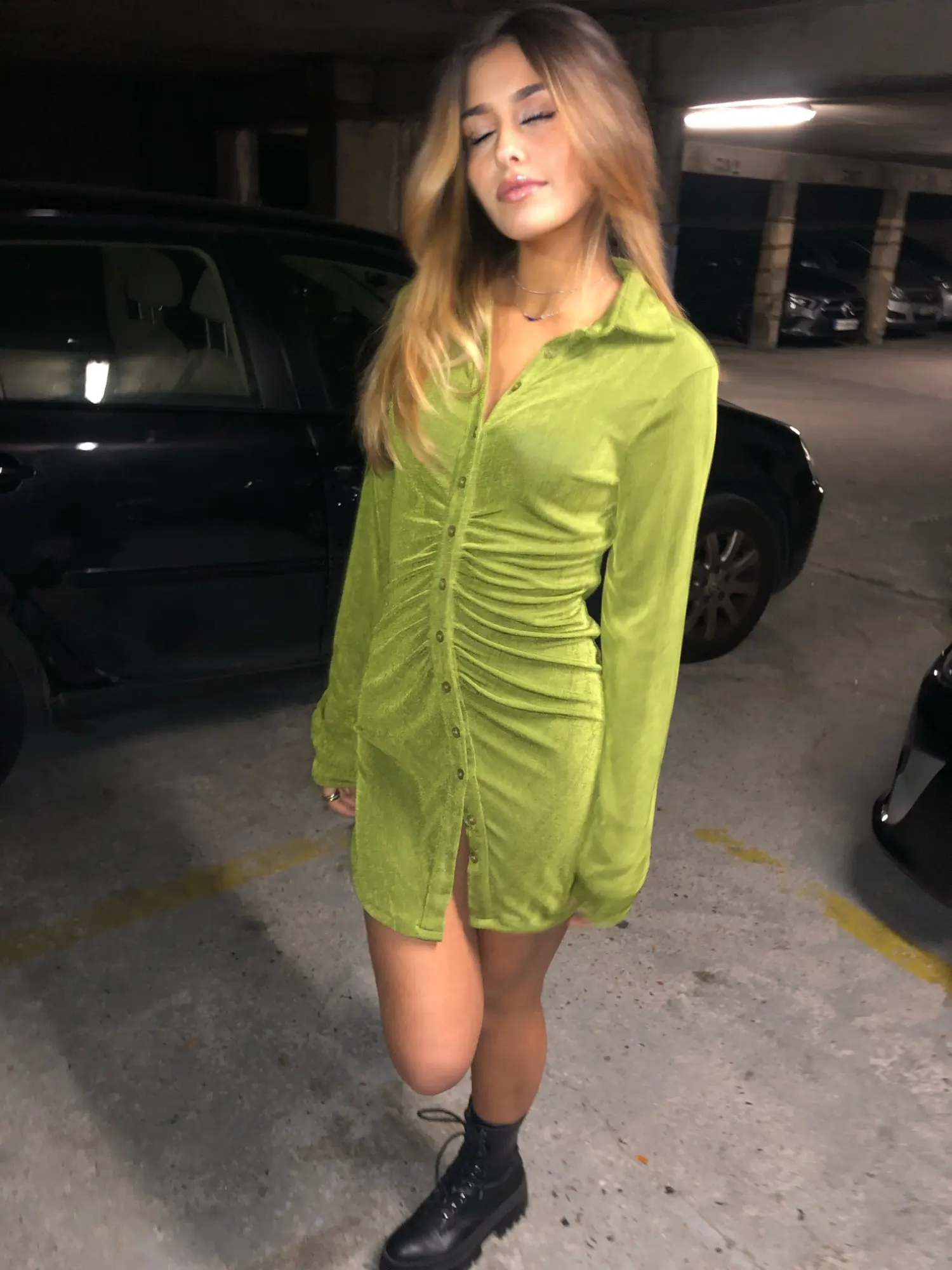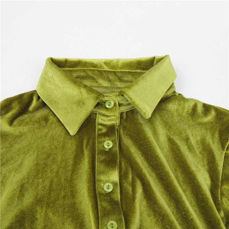 Женское облегающее мини-платье, зеленое клубвечерние вечернее короткое платье с отложным воротником, на пуговицах, элегантная уличная одежда, рубашка