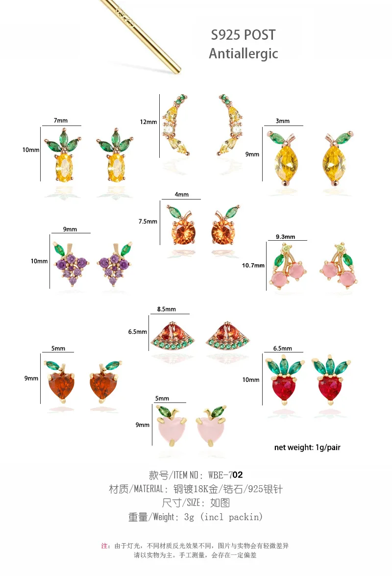 Ins Лидер продаж 14K позолоченные милые серьги-гвоздики в форме фру...