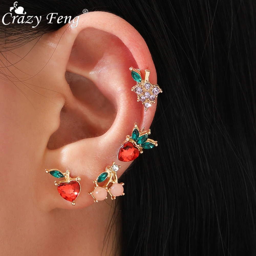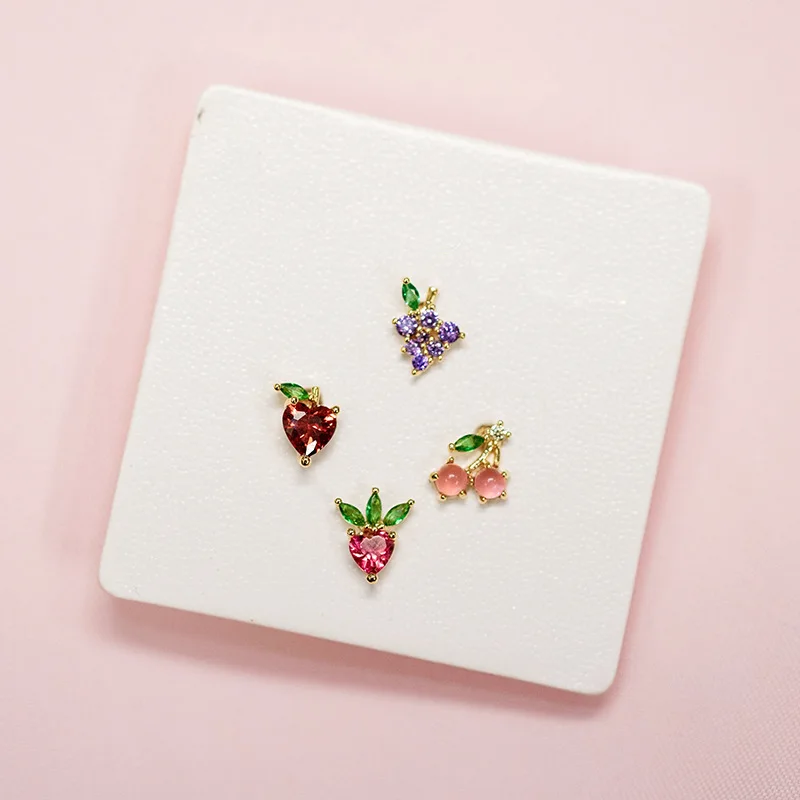 Женские серьги-гвоздики, разноцветные, в форме фруктов, вишни, персика, винограда