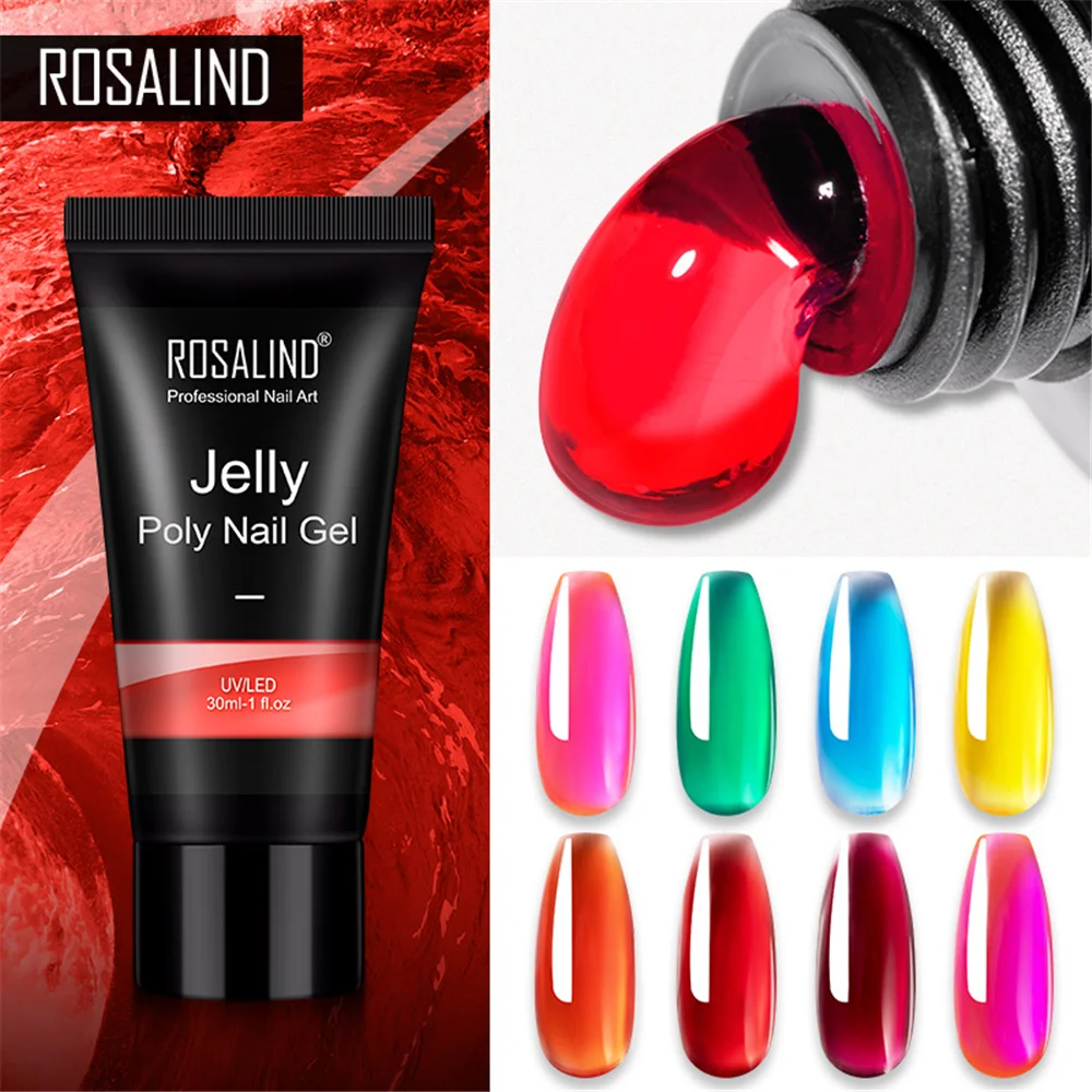 ROSALIND 30 мл полигель для ногтей Желейная глазурь цвета наращивание ногтей гель для дизайна ногтей полупостоянные гибридные Лаки