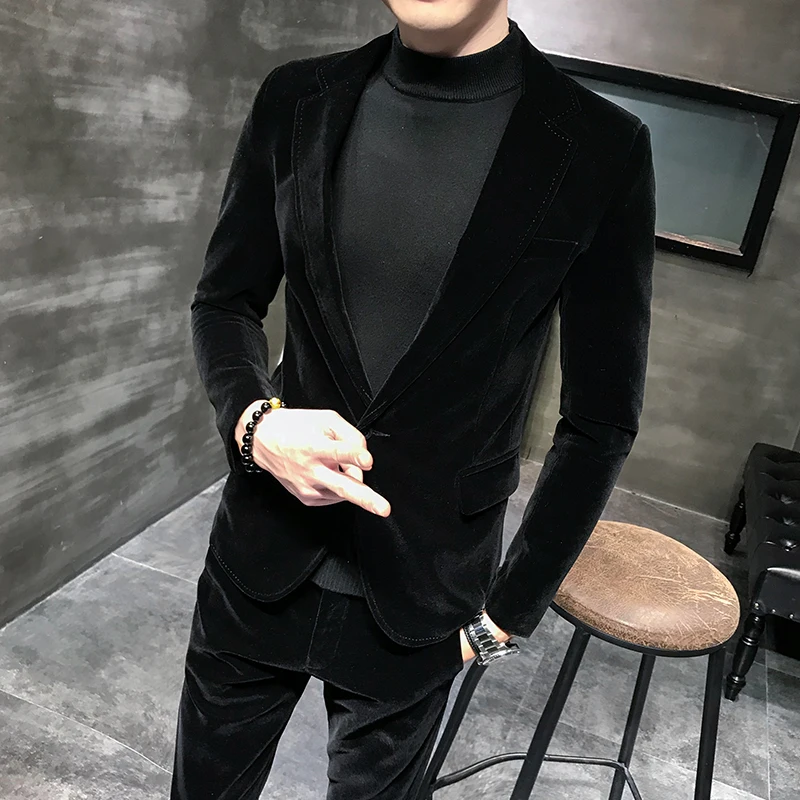 Мужской бархатный костюм из двух предметов, приталенный костюм с бр...