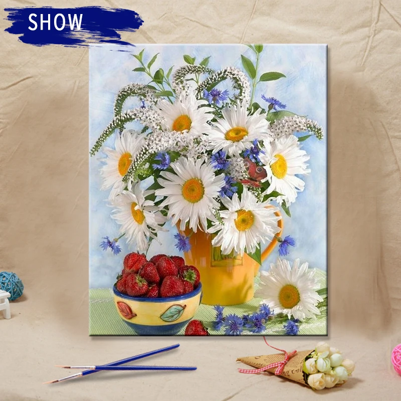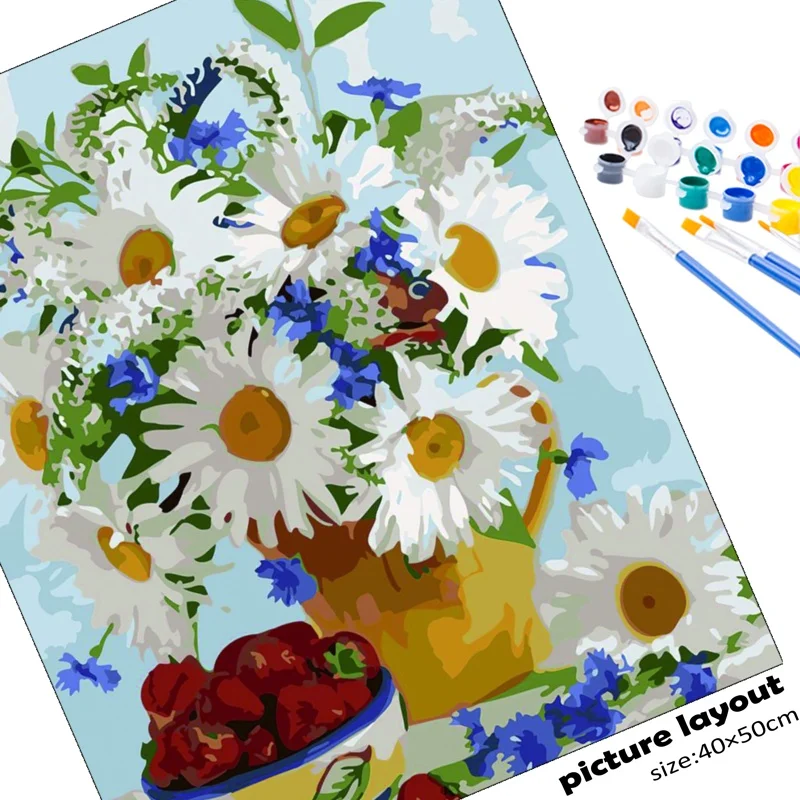 Набор для рисования по номерам на холсте, ваза с цветами для раскрашивания маслом, акриловая краска для взрослых, домашнее украшение