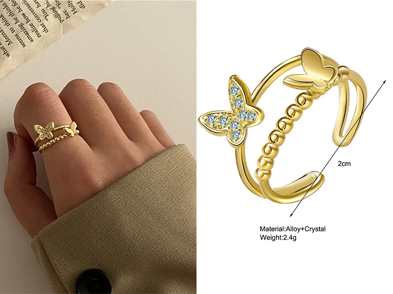 Набор женских колец с бабочкой, регулируемое золото, 2021
