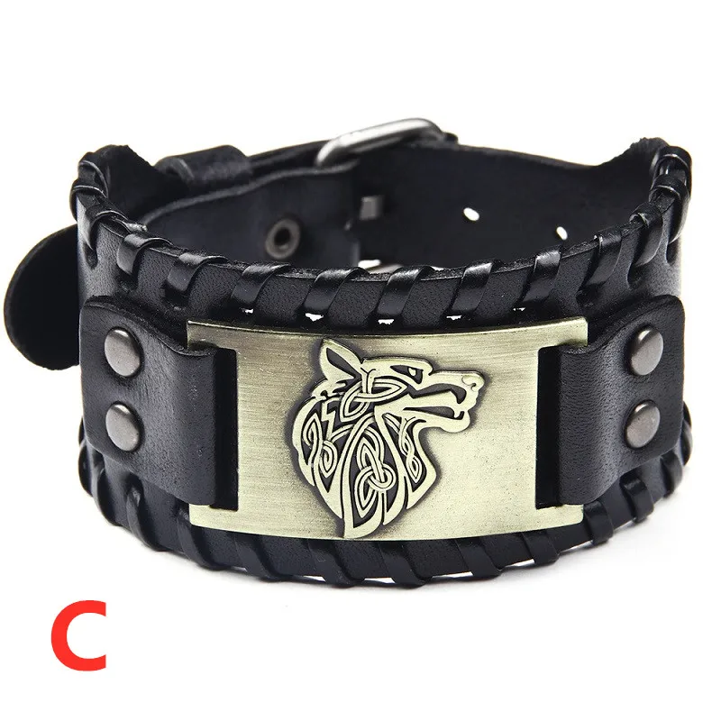 Винтажный плетеный кожаный браслет викингов для мужчин, классические украшения в виде головы кельтского волка с мотивами животных, ювелирные изделия на руку, аксессуары