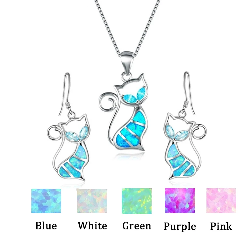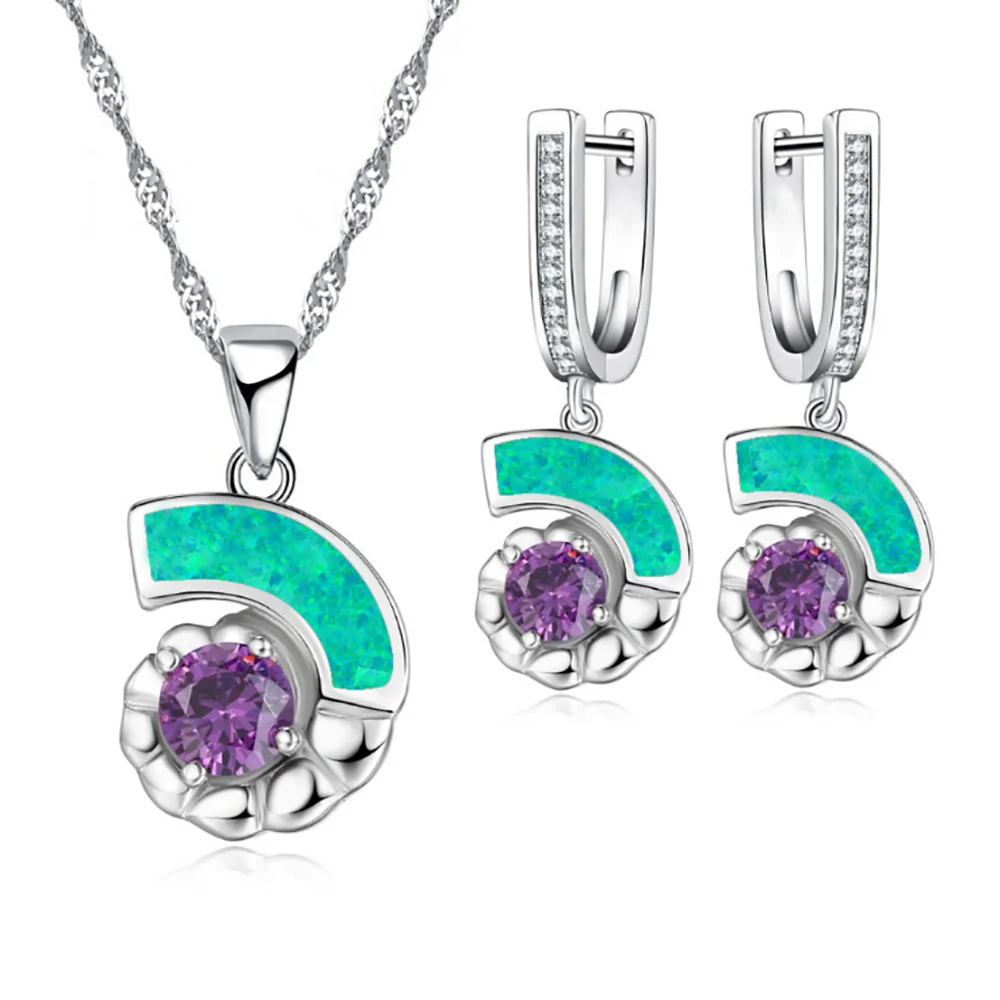 32 стиля модная геометрическая форма искусственный Синий огонь опал Фиолетовый кристалл кулон ожерелье серьги ювелирные изделия