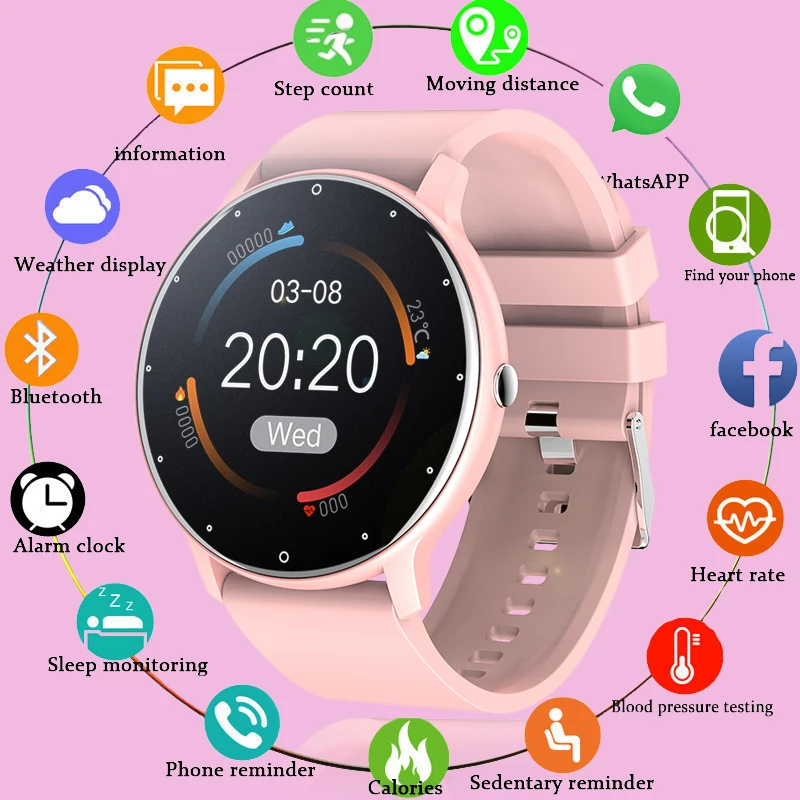 2021 модные умные часы с сенсорным экраном для женщин с пульсометро...