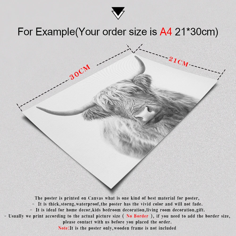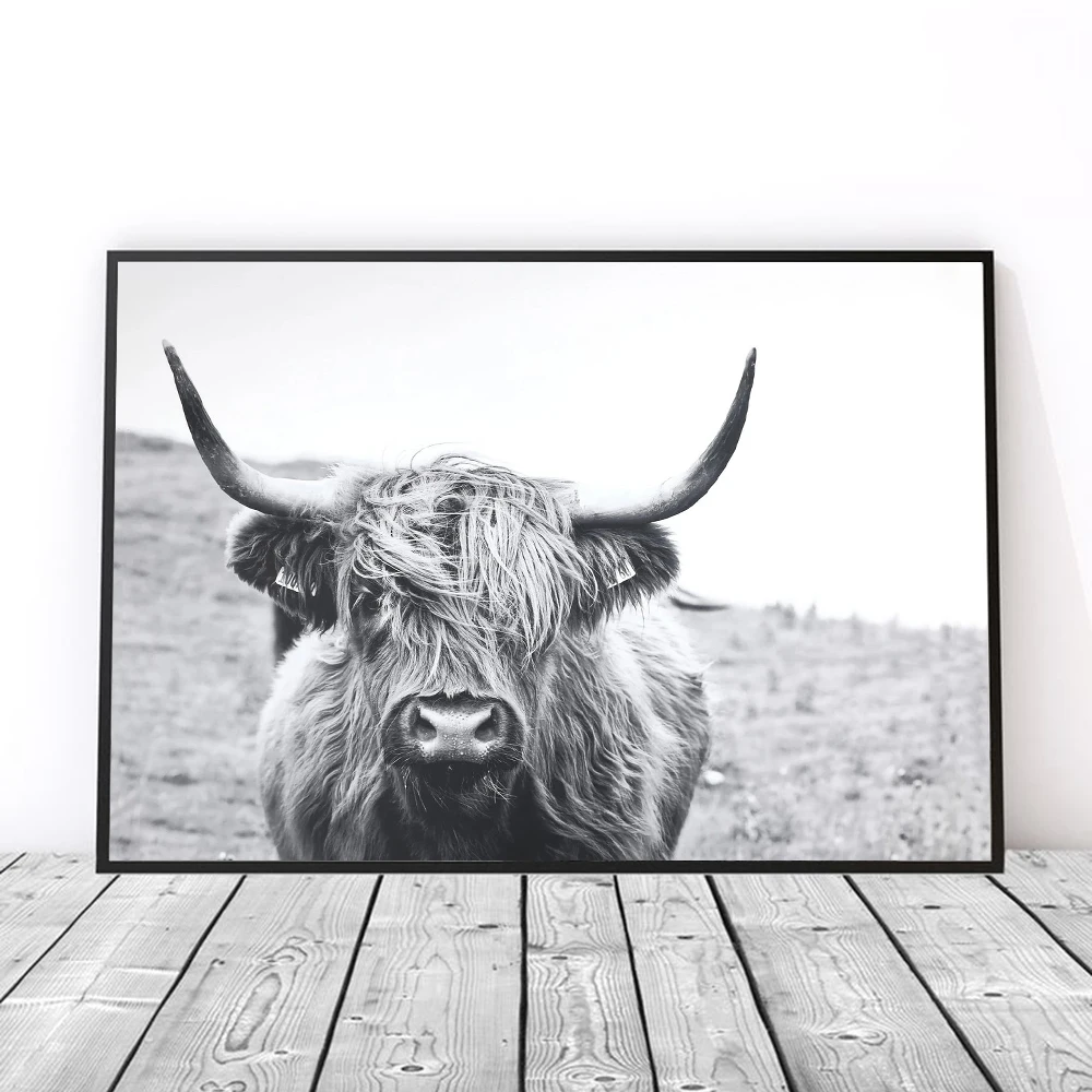 Черный и белый нагорье корова стены искусства абстрактный холст живопись минимализм животных большие постеры гостиная спальня фотографии