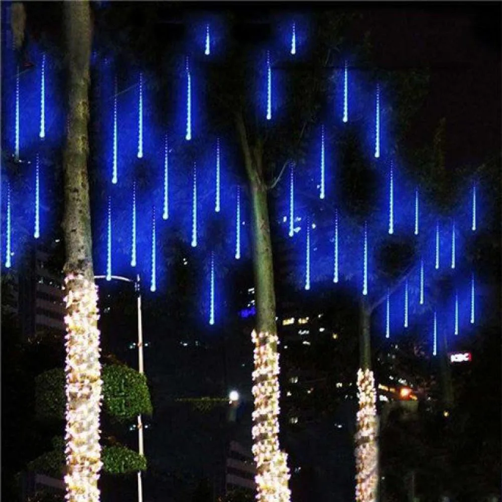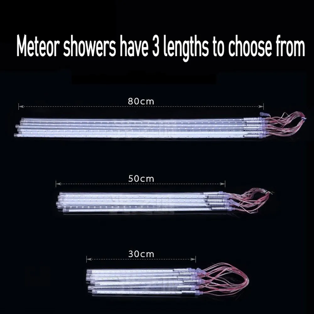Водонепроницаемая светодиодная гирлянда метеоритный дождь, 8 трубок, уличное праздничное Рождественское украшение для елки, вилка стандарта ЕССША, 30 см, 50 см