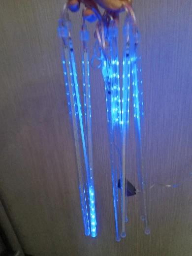 Продавец отправил товар быстро. Посылка отслеживалась и пришла на 2 недели раньше срока. Я довольна, что успею повесить сосульки до Нового года. Товар пришёл целый. Однако упаковка вызвала у меня удивление - картонная коробка, завёрнутая в тонкий слой паролона (на фото видно). Сами сосульки длиной не 50 см., как заявлено, а 43 см. Сделаны они из тонкого пластика, если пальцами сильно сжать, то легко можно раздавить. Гирлянда рабочая. Продавца рекомендую.