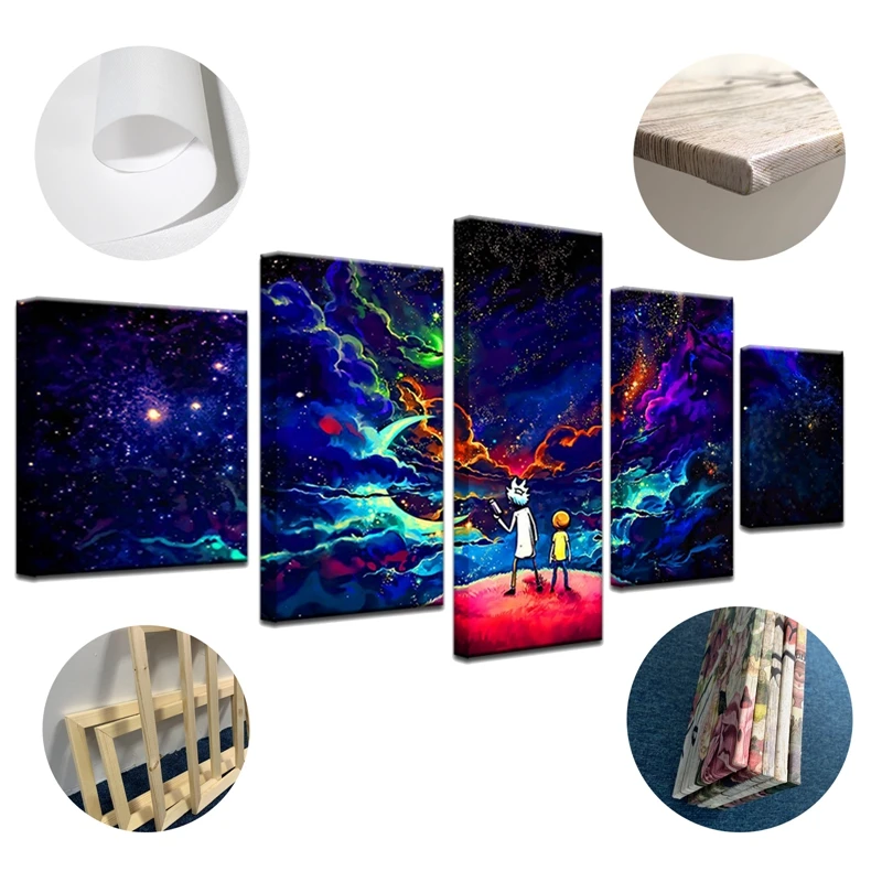 Настенные художественные плакаты на холсте, 5 шт., картина с анимац...