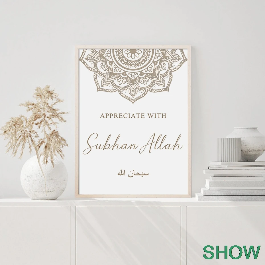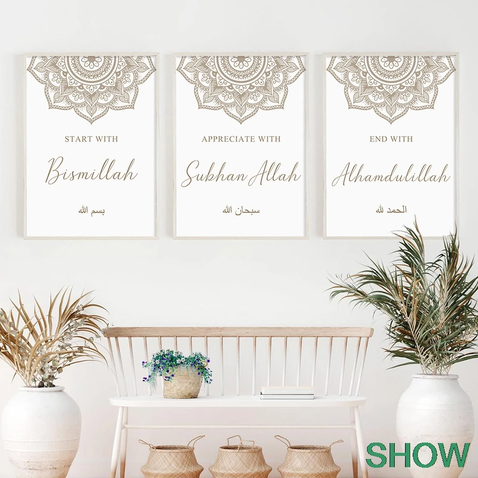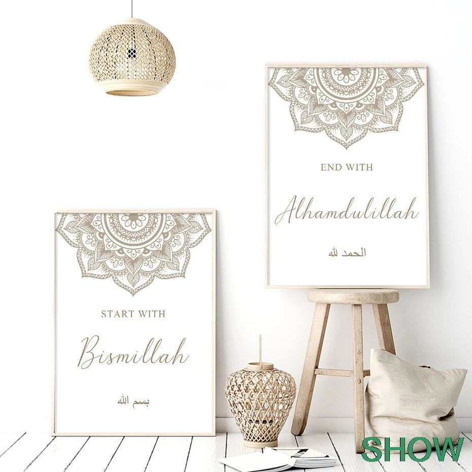 Современный домашний Декор, живопись на холсте, богемная мусульманская бисмила, бежевый цветок, плакат, печать, мусульманское искусство на стену