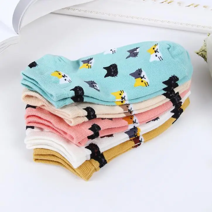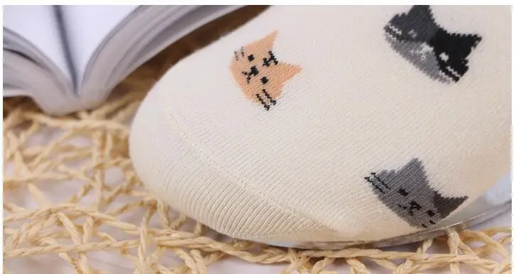 Носки женские Короткие хлопковые, модные милые летние невидимые повседневные с мультяшным принтом кота, 1 пара