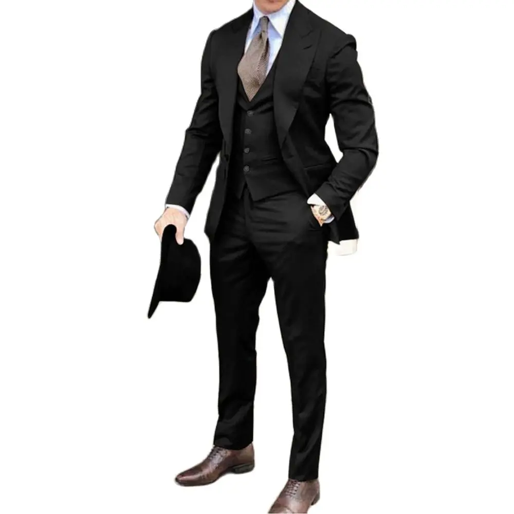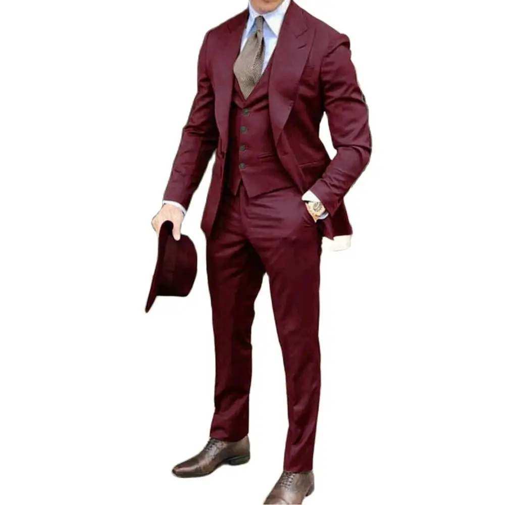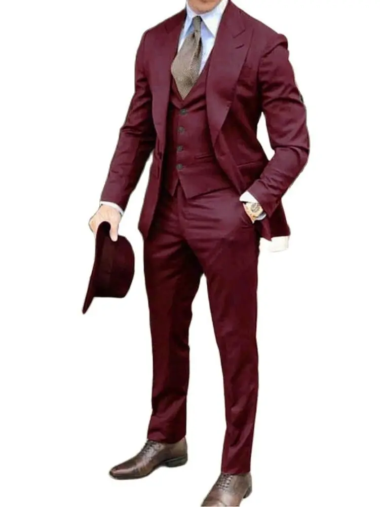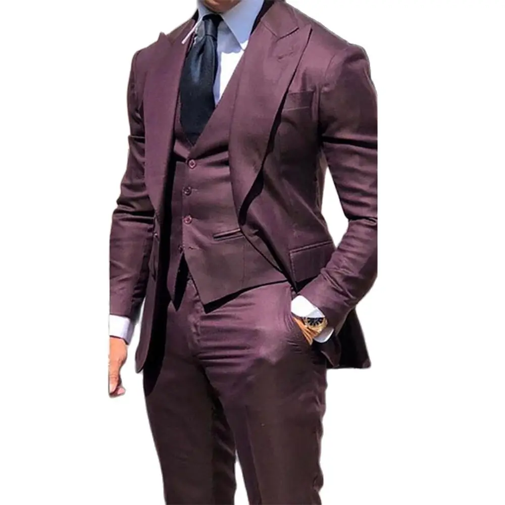VEIAI 2021 коричневый классический мужской костюм из 3 предметов, смокинг на заостренными лацканами жениха Нарядные Костюмы для свадьбы, комплект модной одежды для мужчин деловой пиджак + брюки