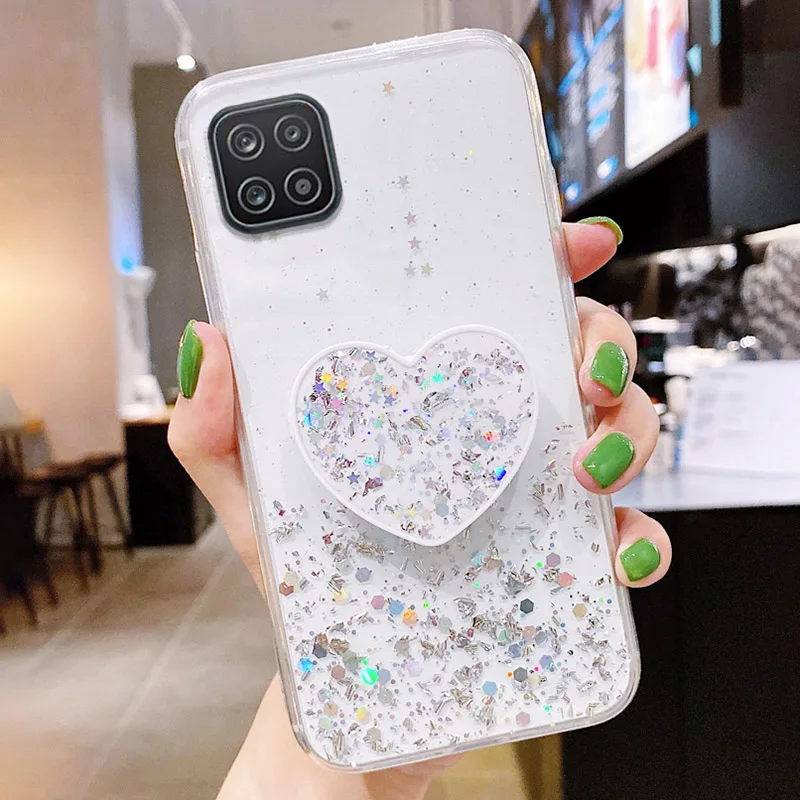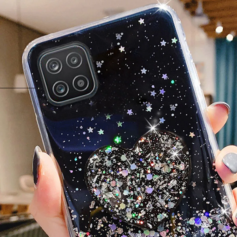 Блестящий чехол с держателем в форме сердца для Samsung Galaxy A12,...