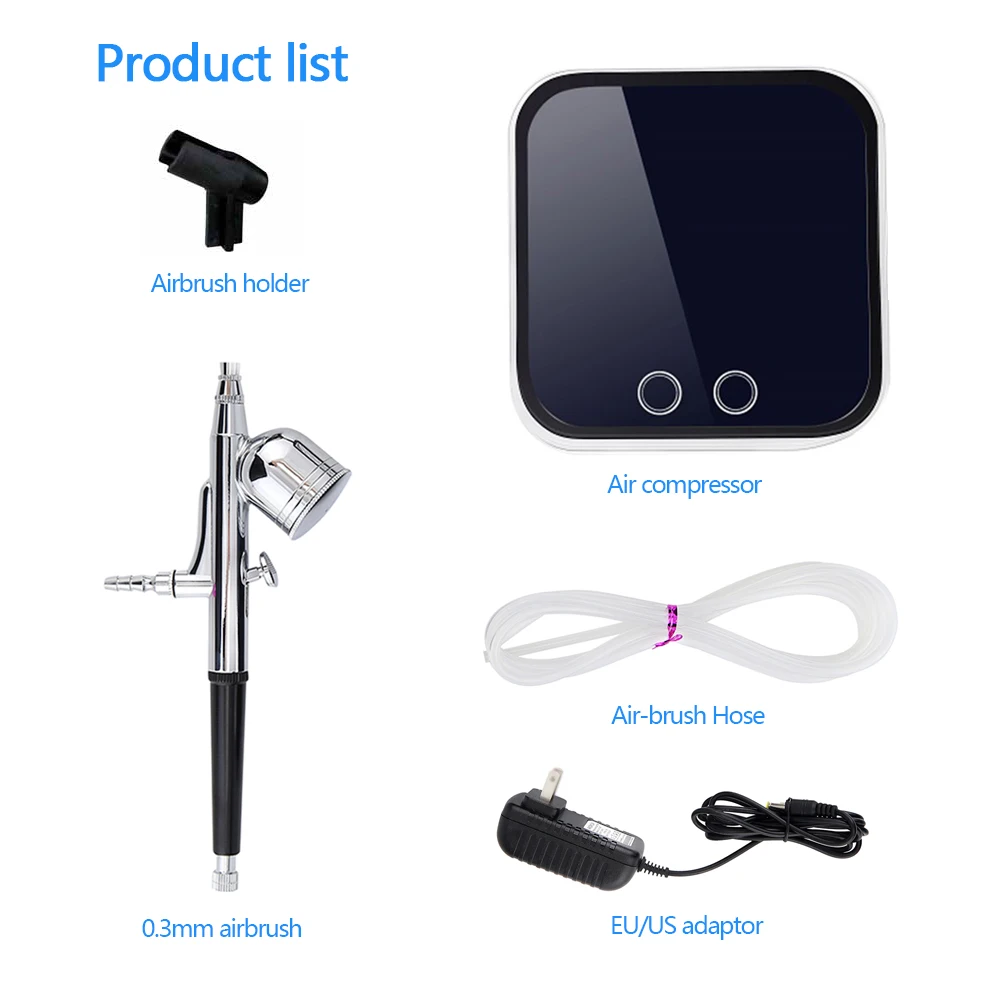 Включает портативный воздушный компрессор, воздушный шланг, двойного действия гравитационный питательный Аэрограф, мини воздушный фильтр, держатель, гаечный ключ сопла и капельница для глаз.Профессиональный набор Аэрограф Двойного действия с гравитационным питанием для хобби красок.Аэрограф для изготовления моделей, украшения тортов, нарисуйте контур камуфляжа, татуировки гвоздь и т. д.Довольно и прочный мини воздушный компрессор, портативный светильник, вес и легко носить с собой.Экономьте гораздо больше времени, чем Рисование ручной работы, и отлично подходит для вашего бизнеса с распылителем.Широко используется энтузиастами общей модели.Держатель аэрографа 360 ° для удобного использования аэрографа.