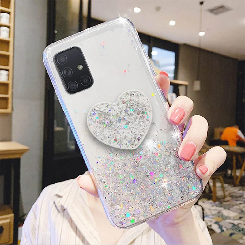 Блестящий чехол с держателем в форме сердца для Samsung Galaxy A12,...