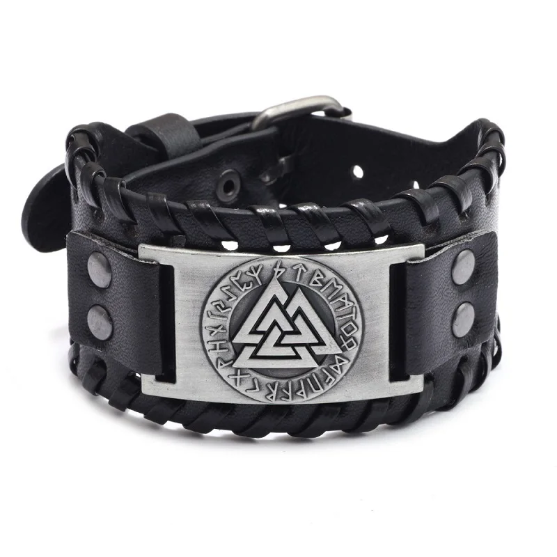 Винтажный широкий кожаный браслет Тотем викингов для мужчин, треуго...