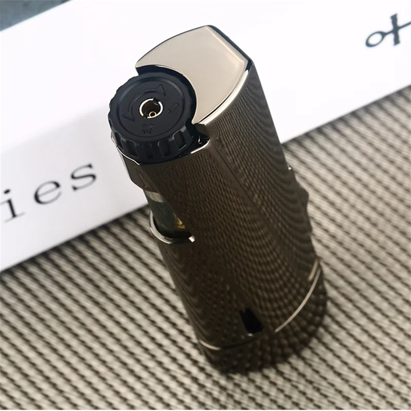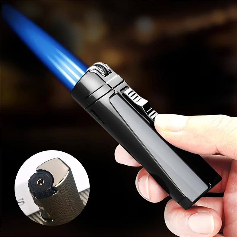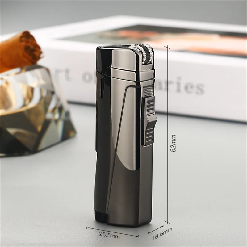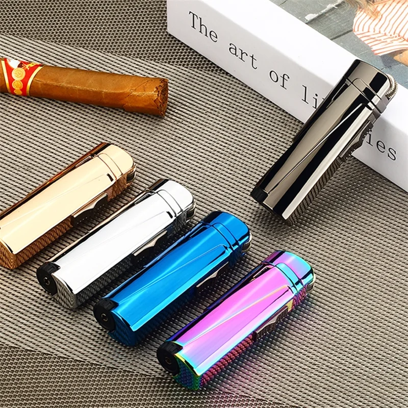 Металлическая мини-Бутановая струйная зажигалка, три фонарь, турбо портативная Зажигалка для курения, аксессуары для мужчин сигары сигареты