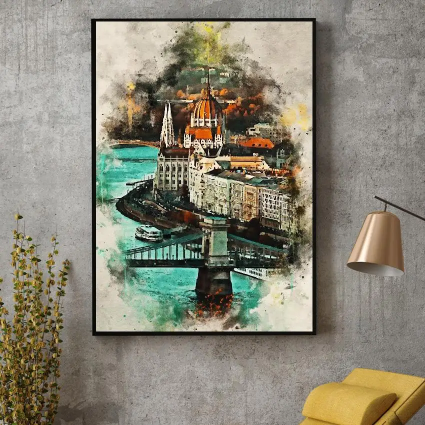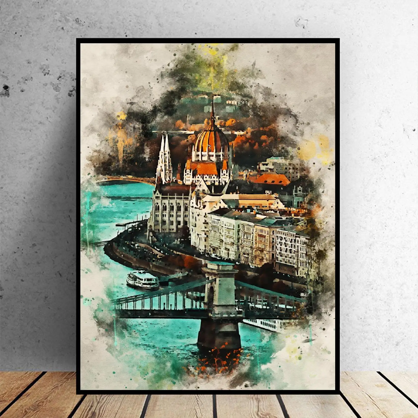 Будапешт акварель винтажная Картина на холсте здания настенные художественные картины Домашний Декор настенный плакат для декора для гостиной